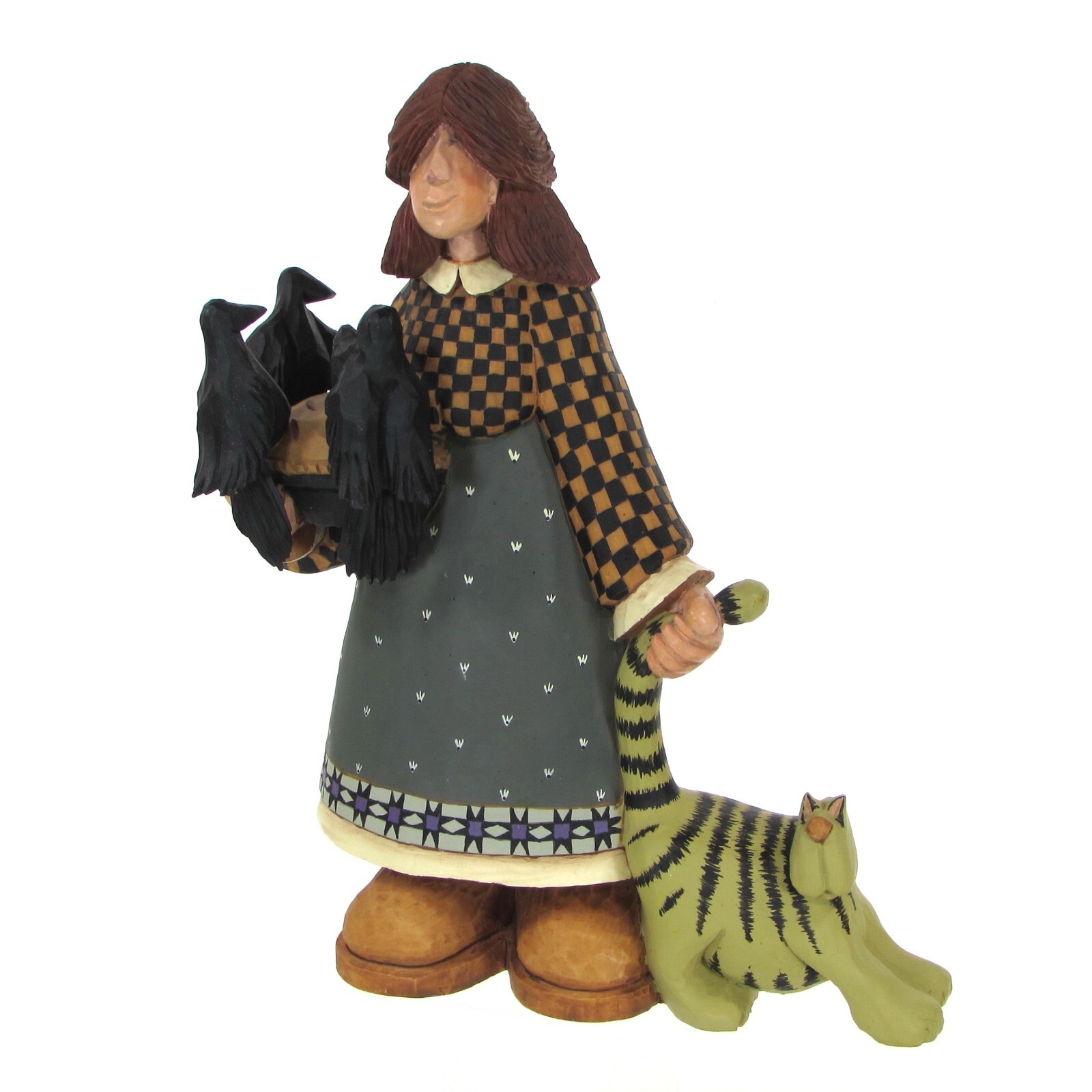 Vintage Williraye GIRL W/ CAT, PIE, BLACK BIRDS 9" Figurine Lady 1998 WW1036