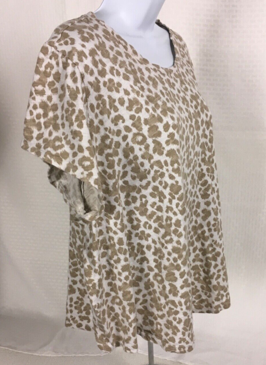 Old Navy Womens Top Size XXL Ivory Brown Leopard Print T shirt short Sleeves