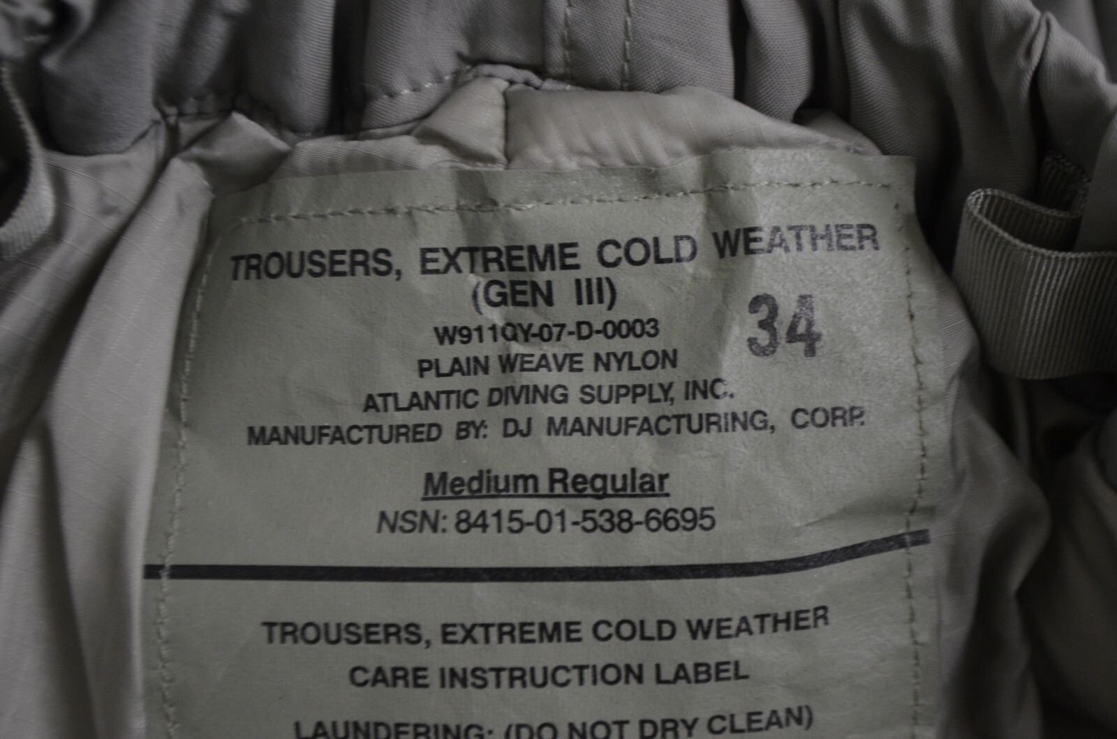 Trousers Extreme Cold Weather Gen III NSN 8415-01-538-6695 size MED REG NWT