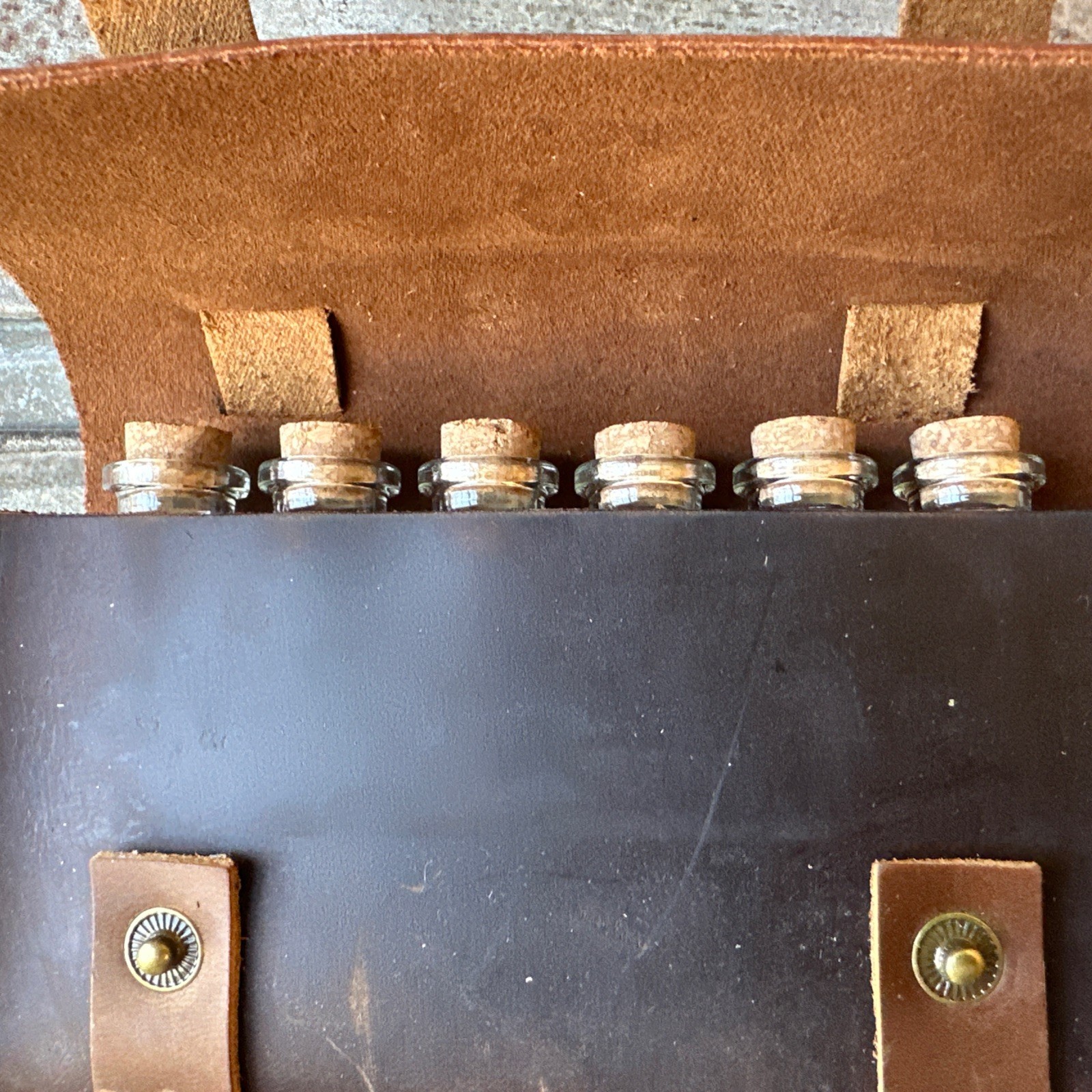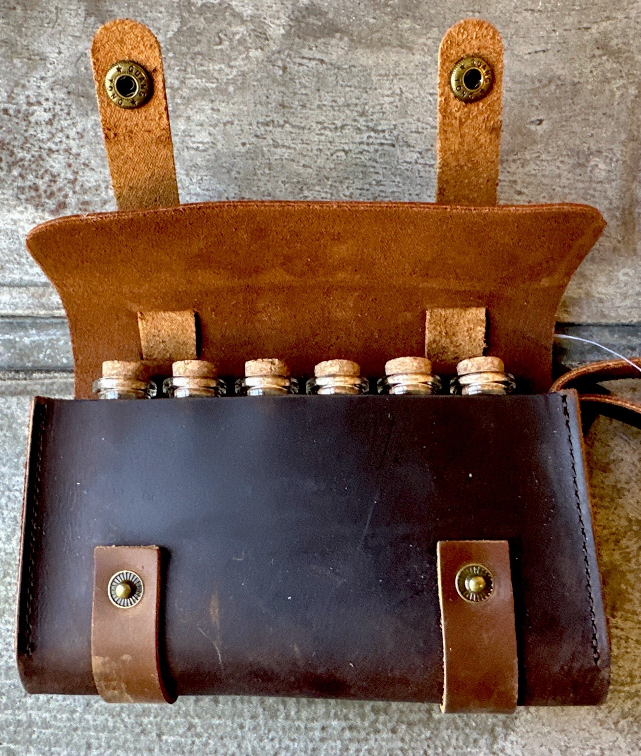 Ruck & River Leather Spice Wallet 6 Glass Jars Spice Rack - New