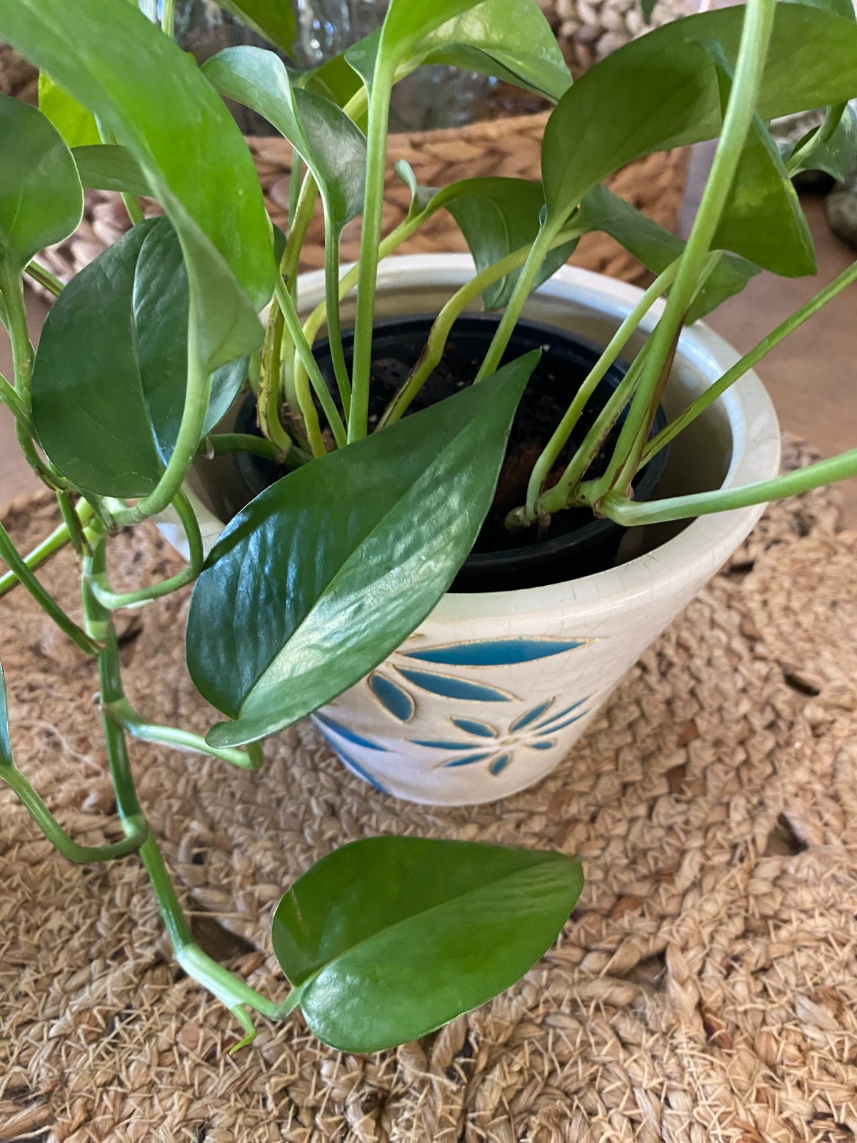 color scheme adds a classic touch to the piece, while the subject of the pot being a flower adds a touch of nature to your decor. Whether you place it on a shelf or desk, this planter is sure to be a lovely addition to your space.
