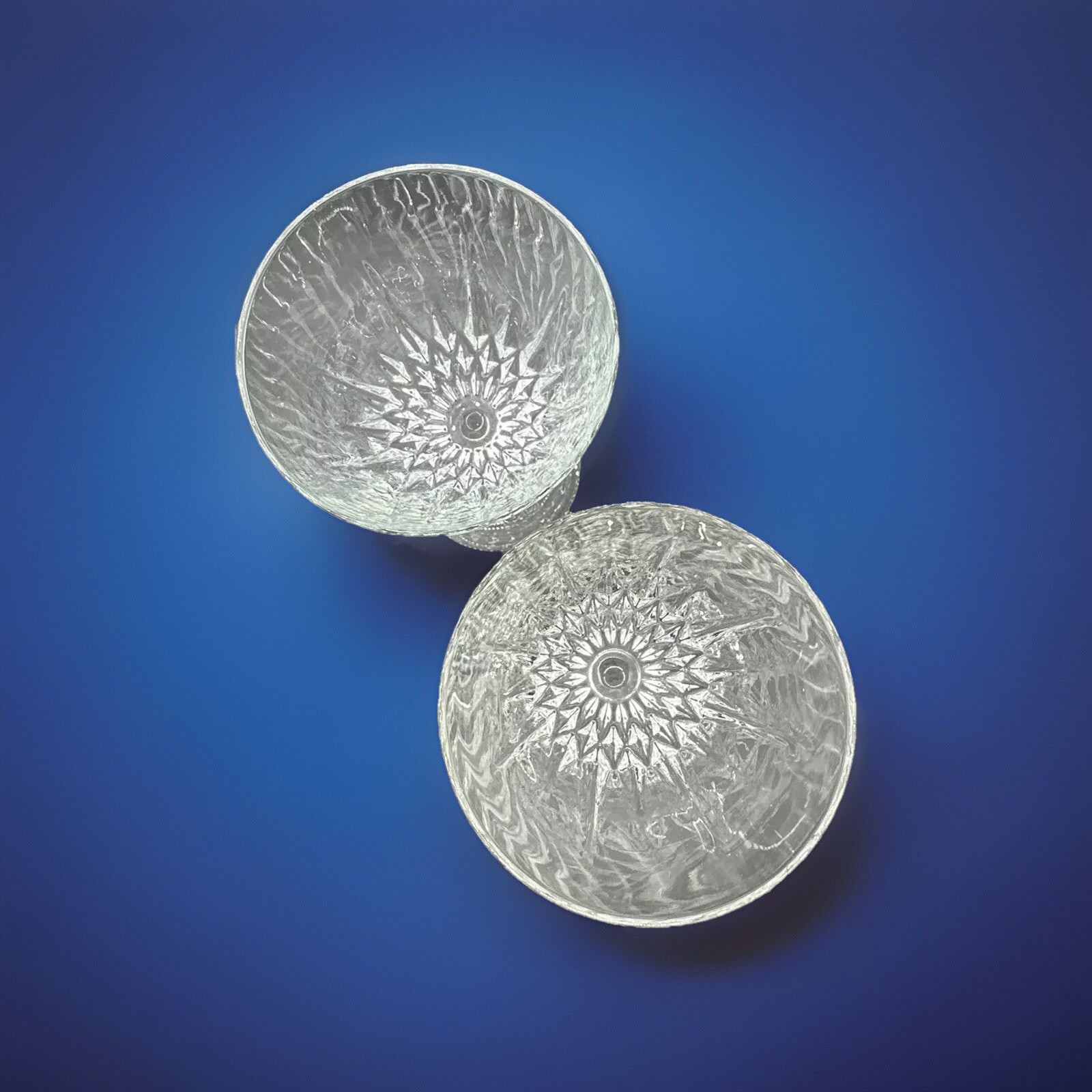 This set of 2 water glasses with a star pattern is perfect for holiday dinners, parties, or everyday use. Made of clear glass, these wine glasses have a glossy finish and decorative features make them ideal for serving wine or water in an elegant manner. Hand wash only to preserve their original beauty, these water goblets are a stylish addition to any table setting. The condition is very good. See photos.