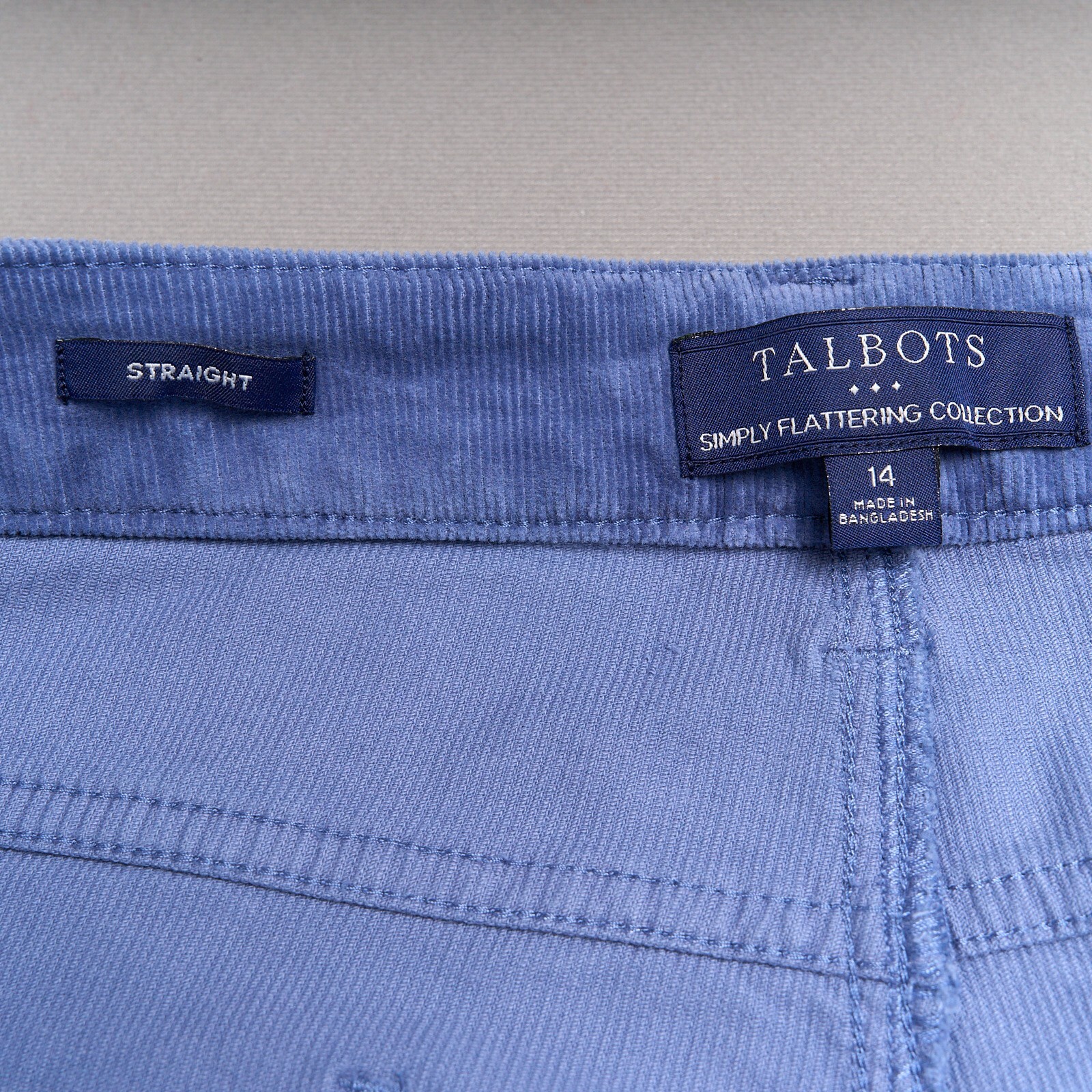 Talbots Corduroy Pants Womens 14 Blue Simply Flattering High Waist Straight Leg Specs