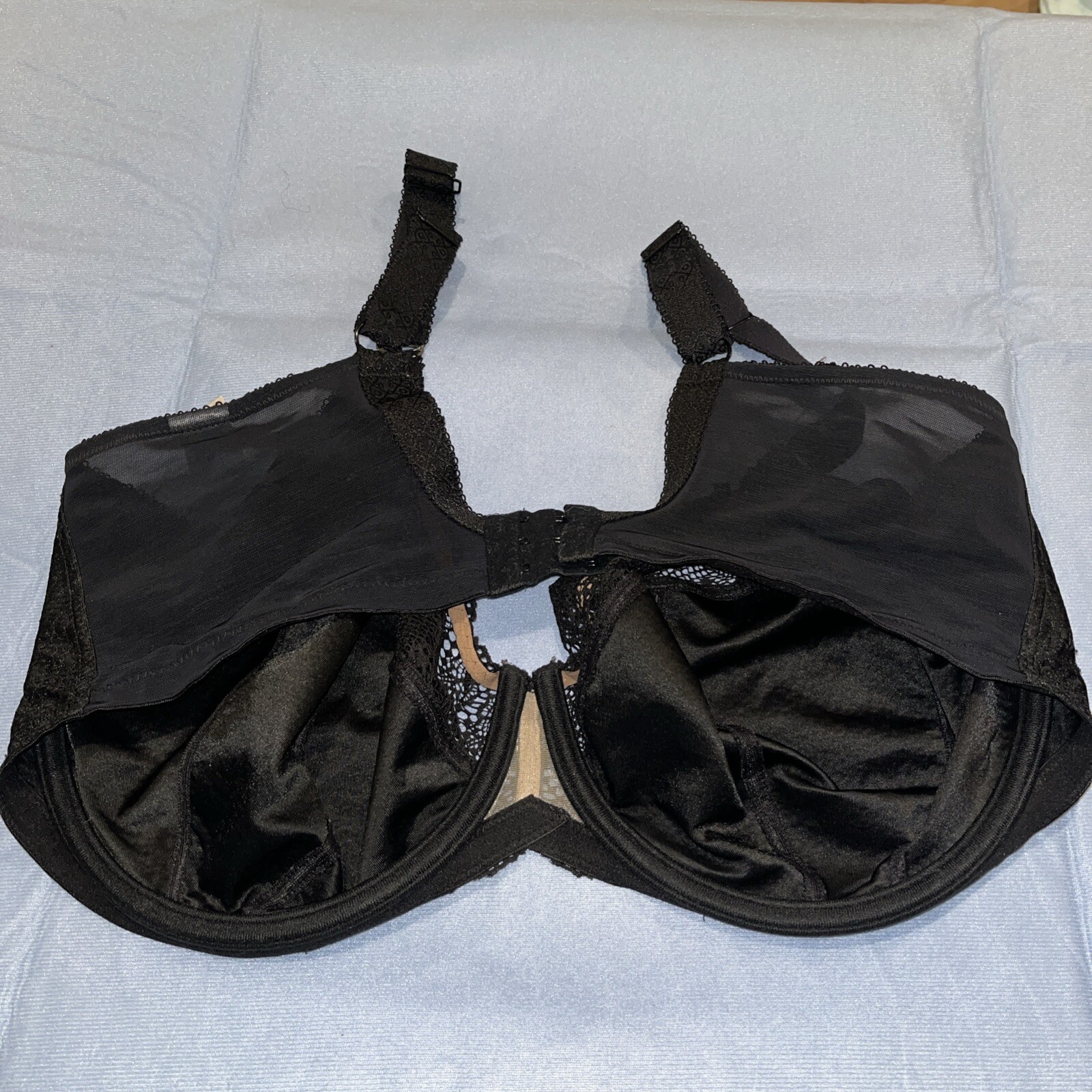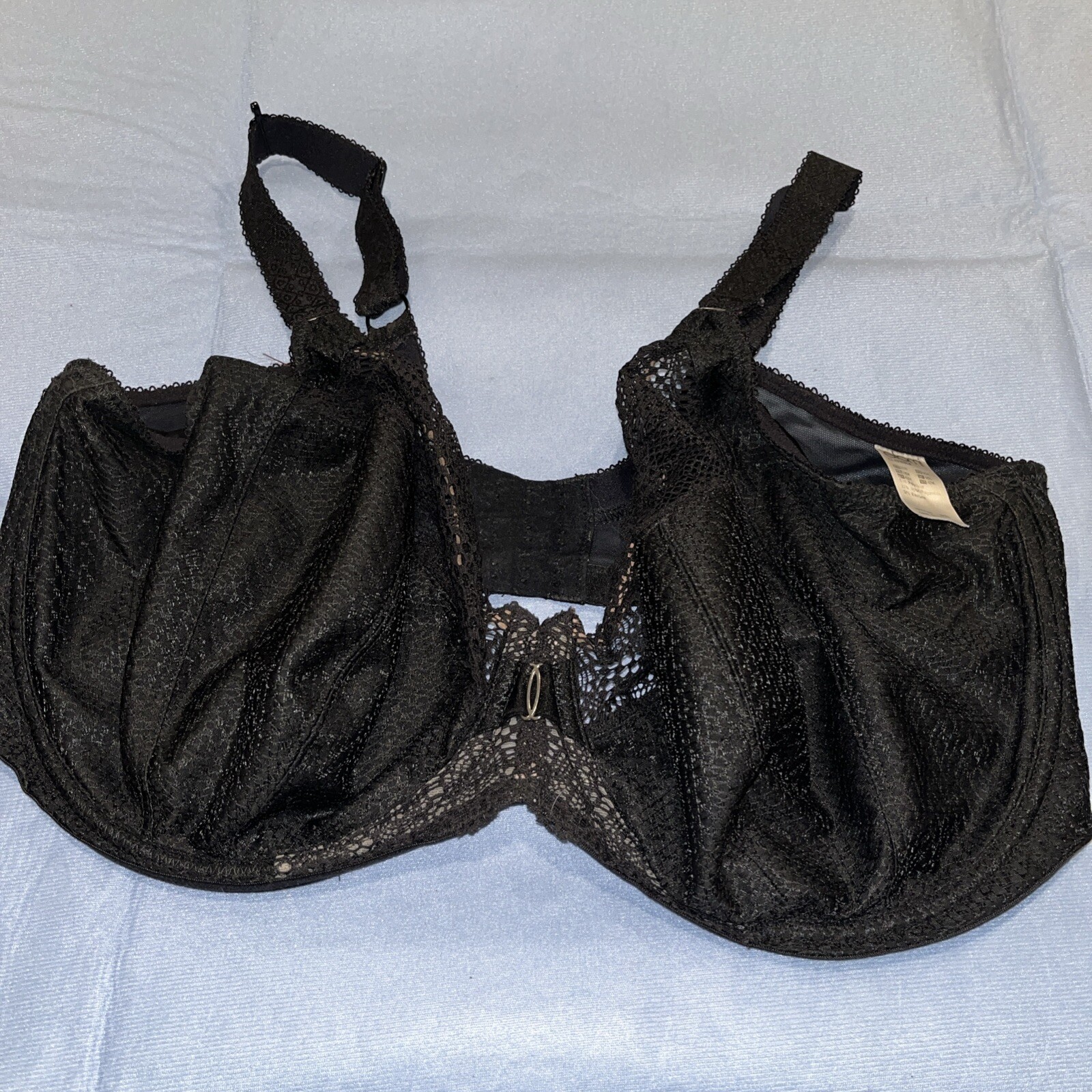 Glamorise 4010 Full Figure UW Support Bra Size 42F Black W Lace Trim