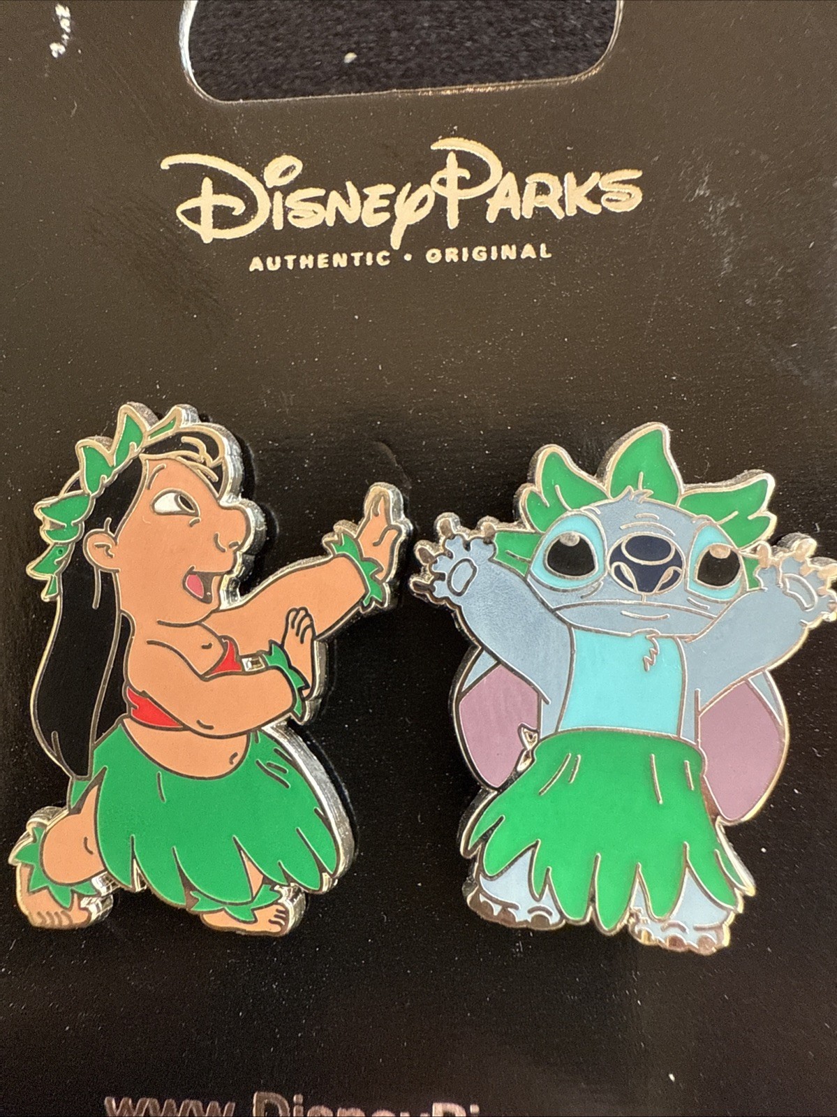 Disney Lilo & Stitch Hula Dancing 2 Pin Set - New on Original Card