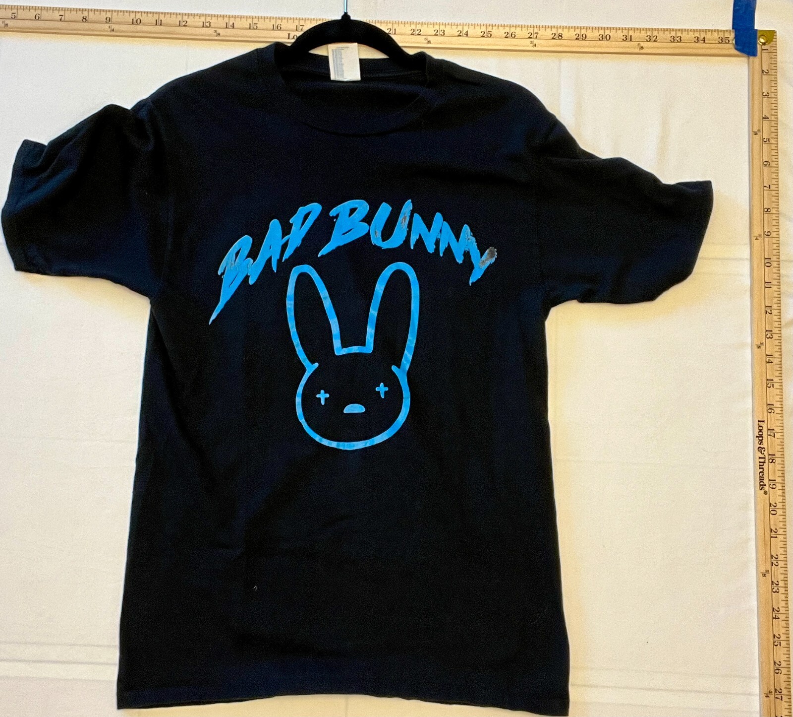 Bad Bunny T-Shirt El Ultimo Tour Del Mundo 2022 Blue Bunny Logo Black ShirtTour Dates on the back, Denver ElPaso Houston Dallas San Jose Pheonix Atlanta and many moreRaggaetonRaggaeHip HopSIZES VARY! always use the measurements in the photo provided rather than the