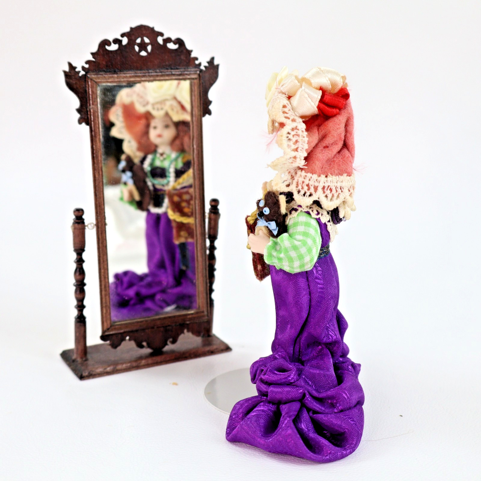 1:12 vintage dollhouse miniature artisan Mirror & Girl Doll play dress-up OOAK