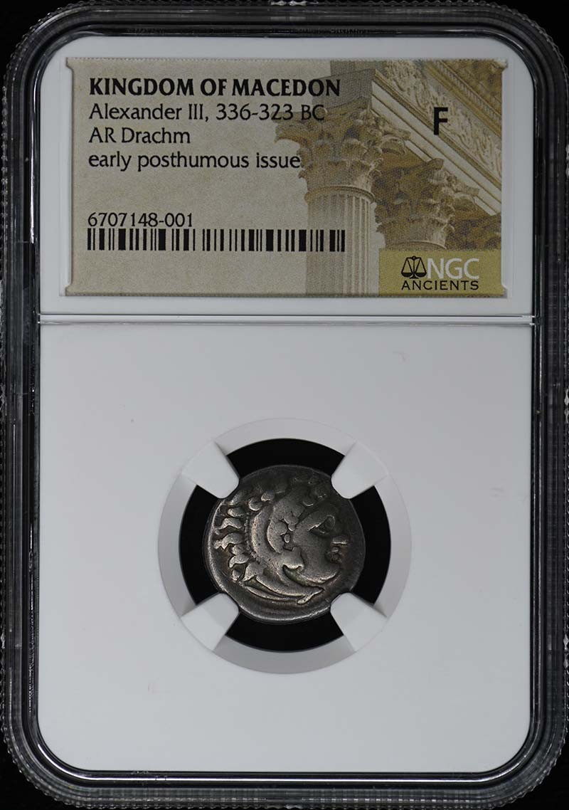 td, th tr:nth-child(even) tr:hover th a h2 h3.bar h2 h3.bar a p big , a img @media (min-width: 320px) } @media (min-width: 992px) } @media (min-width: 320px) } @media (min-width: 481px) a a img.dsnw_thumb } @media (min-width: 641px) a a img.dsnw_thumb } img img input[name='thumb_switch'] label span label img input[name='thumb_switch']:checked+label input ~ input[name='thumb_switch'] ~ input[name='thumb_switch']:checked + label + + label + @media (max-width: 1210px) and (min-width: 1140px) } @media(min-width:992px) and (max-width:1140px) } @media (max-width: 992px) } @media (max-width: 939px) } @media(width: 768px) label span label img } @media(max-width: 767px) , img label span label img } Alexander III, 336-323 BC KINGDOM OF MACEDON AR Drachm NGC F12 Alexander III, 336-323 BC KINGDOM OF MACEDON AR Drachm NGC F12 Alexander III, 336-323 BC KINGDOM OF MACEDON AR Drachm SKU: 6707148001 Alexander III (Alexander the Great) AR Drachm — Kingdom of Macedon, 336–323 BC — NGC F12 (Fine) An iconic ancient Greek silver coin struck in the name of Alexander the Great, this AR drachm embodies the power and reach of the Macedonian empire. Certified by NGC at F12 (Fine), it presents honest, even circulation with clear major devices—an ideal, historically significant type coin for both emerging and advanced collections. Key detailsIssuer: Kingdom of Macedon, in the name of Alexander III (336–323 BC)Denomination/Metal: AR Drachm (silver)Obverse: Head of Herakles right, wearing the Nemean lion-skin headdressReverse: Zeus Aëtophoros seated left, holding eagle and scepter; legend AΛEΞANΔPOYGrade: NGC F12 (Fine), a collectible, problem-free circulated example with strong type recognitionDate/Mint: Struck during or shortly after Alexander’s reign; the type was produced across numerous Macedonian and imperial mints Why this coin stands outHistoric centerpiece: Alexander’s drachms funded his campaigns and remained the dominant trade silver across the Mediterranean and Near East for generations.Blue-chip type: The Herakles/Zeus design is the quintessential “Alexander” coin—widely referenced and highly liquid, with enduring collector demand.NGC-certified authenticity: Professionally authenticated and graded, offering confidence and long-term collectibility. Collector notesF12 (Fine) indicates moderate wear with design elements still clearly visible—Herakles’ lion-skin and Zeus’ seated figure remain identifiable, making this a strong representative of the type without the premium of higher grades.An excellent entry point into classical Greek numismatics and a must-have for any Alexander set, Greek type collection, or historical investment in ancient silver. Search-friendly terms Ancient Greek silver coin, Alexander the Great drachm, Kingdom of Macedon AR Drachm, NGC graded ancient coin, Herakles Zeus drachm, Macedonian empire coin, collectible ancient silver. Add this certified Alexander III AR drachm to your collection and own a tangible piece of the coinage that shaped the Hellenistic world. PCGS # Grading Service NGC Grade F12 Mint Location Year Designation Strike Grade Add On NONE