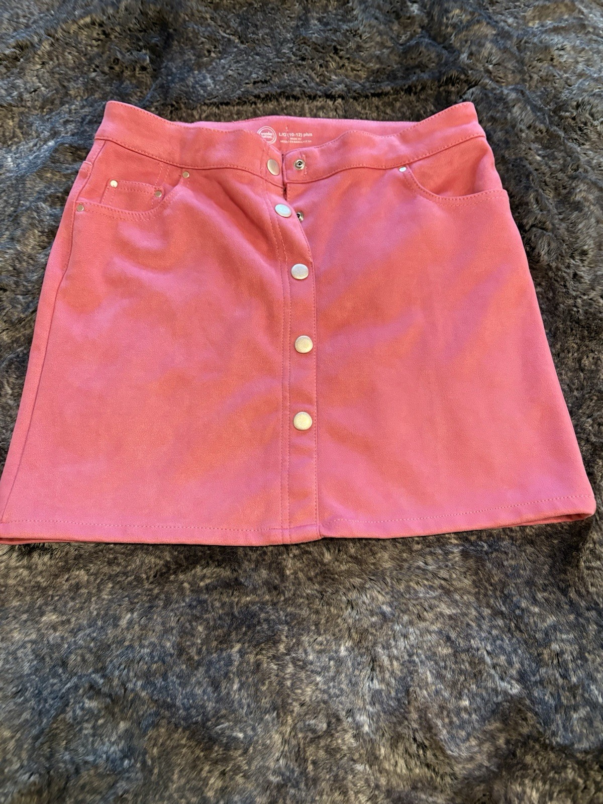 Girls Pink Faux Suede A-Line Button Skirt L/G (10-12) Plus Punk Preppy Rocker