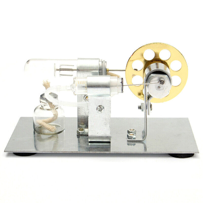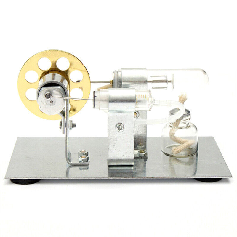 SAFE & SECURE SHOPPING 100% SATISFACTION GUARANTEED FAST SHIPPING Hot Air Stirling Engine Model Electric Generator Motor Physics Steam Power Toy Product Description If you have any questions, please contact customer service first, do not open disputes easily, thank you! Descriptions:1. Stirling engines are unique heat engines because of their theoretical efficiency is almost equal to the theoretical maximum efficiency, Called the Carnot cycle efficiency. The Stirling engine is heated by gas expansion, cold contraction generate power.2. This is an external combustion engine in which the fuel is burned continuously, and the piston is moved by the expansion of air (or helium or hydrogen) as a medium, and the expansion gas is cooled in the cold chamber, and the cycle is repeated. Only a small alcohol lamp, you can make it fast rotation and strong power.3. As the external combustion engine to avoid the traditional internal combustion engine of the explosion to do work, in order to achieve a high efficiency, low noise, low pollution and low operating costs. The biggest advantage of the external combustion engine output and efficiency from the influence of altitude, very suitable for high altitude areas.4. Aerodynamics are rich in knowledge of physics, single cylinder combustion engine. Engine principle is intuitive, educational toys, teaching experimental equipment can effectively cultivate childrens interest in learning, can also be used for classroom teaching, more intuitive and easy to understand.Specifications:Color: Silver+GoldMaterial: Zinc Alloy+GlassSize about: about 165x87x95mmProduct Weight: about 310gPackage Included:1 x Stirling Engine1 x Alcohol Burner (Not Included the Alcohol)2 x Spare Glass Tubes1 x User ManualInstructions:The engine model on the horizontal position by hand toggle the flywheel to see if it is smooth, if there is a strong sense of raw astringent, check the connection rod to see whether it is normal, whether the cylinder has oil and dust, and if so, please use toilet paper to erase. Toggle the flywheel feel pressure rebound within the cylinder body is a normal phenomenon,the cylinder is sealed. Notes:1. Please allow 1-3 cm error due to manual measurement.2. As different computers display colors differently, the