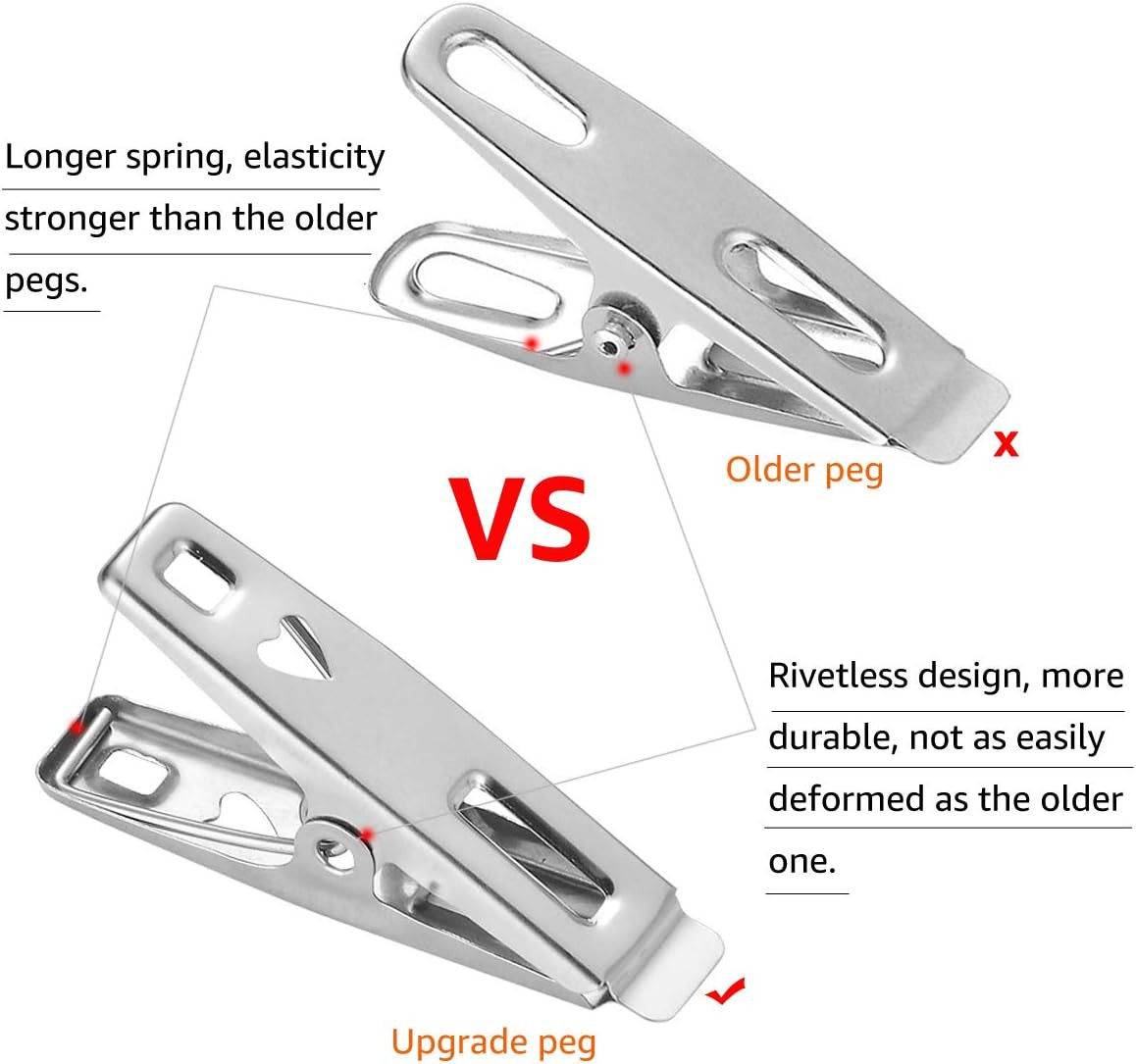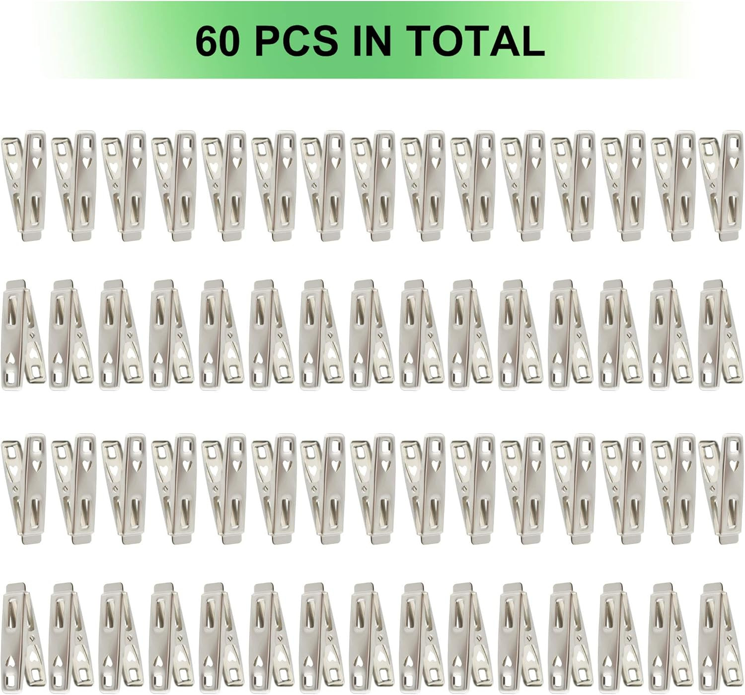 60 PCS Strong Stainless Steel Clothes Pins Metal Laundry Clips with Storage Box
