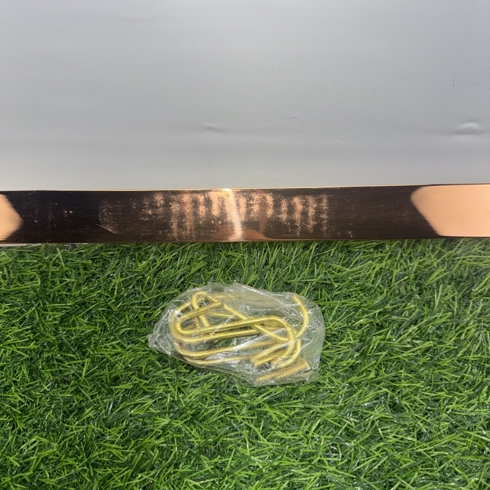 Vintage Solid Copper 24” Utensil Rack Korea Brass Tone Hooks Wall Scuffed NOS
