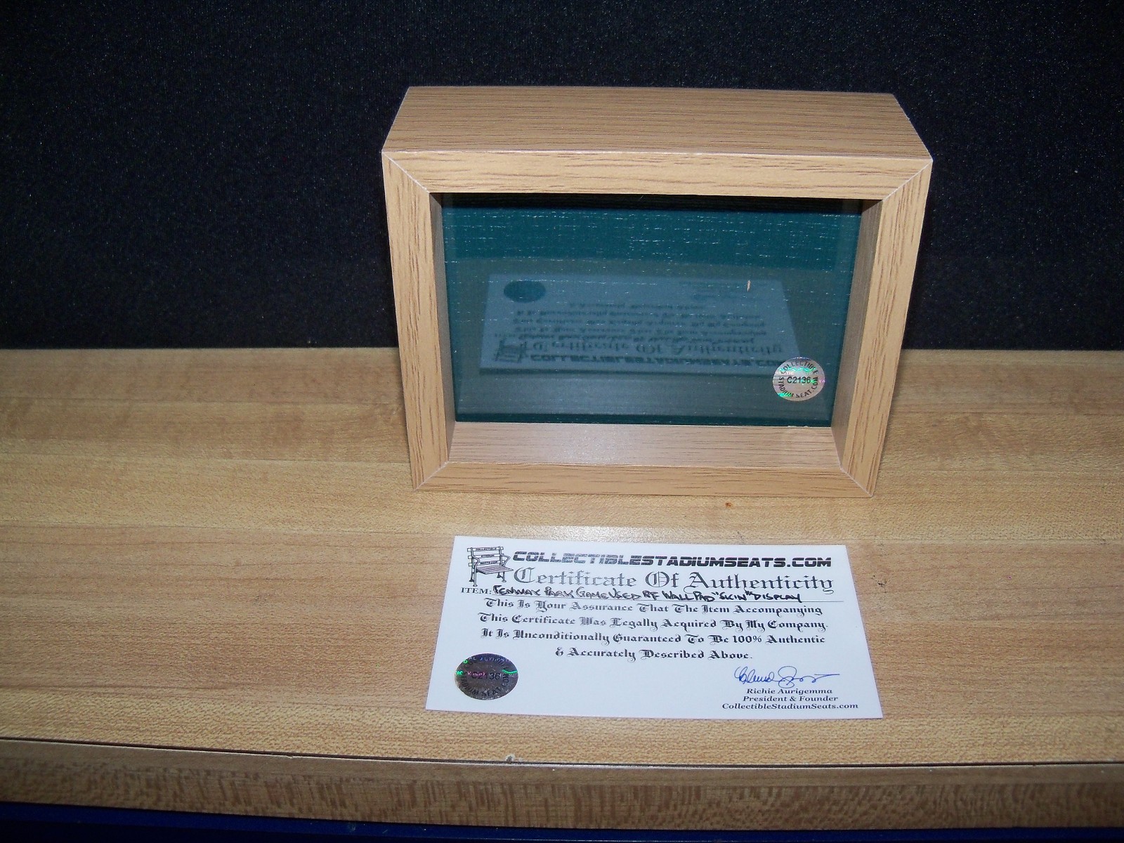 Please Read This ENTIRE Auction BEFORE PurchasingAUTHENTICRight Field Wall Pad "Skin"Framed Desk/Wall Display This solid wood framed artifact was assembled with pride in the U.S.A. & measures approximately 3 3/8" x 4 3/8". Inserted inside is a slice of heavy duty painted vinyl canvas that was once the outer 'skin' of an outfield wall pad that servedin right field near "The Pesky Pole" in Fenway Park, the home of the 'Sawx! This wall pad was retired and authenticated by Major League Baseball in 2010. Being wall pads serve for many,many years before being retired/replaced, its a given that it was in place when Boston won the World Series in 2007 .... and in all likelihood .... was also present when they FINALLY broke the Curse in 2004, too!! The wall pad 'skin' used to create this unique piece of Beantown Sports history was authenticated by Major League Baseball & carries MLB Authenticated Serial Number FJ-255543 on it. This number can be accessed on MLB Authenticated's website, assuring all that the wall pad that was used to create the item offered here .... IS 100% genuine! Other then being wiped down with a damp cloth to remove any surface dirt, this wall pad segment is exactly as it was the day it was retired from Fenway Park. Any/all imperfections you see to this wall pad segment was 'earned' from years of "game use"/service in "America's Favorite Ballpark"! Stand it on your desk at work .... or hang it on your wall .... it looks GREAT either way!!You can touch & feel this wall pad skin .... or remove it from its display to get signed by your favorite Red Sox players .... & then slide it right back inside this frame! (1) FREE Red Sox Logo Sticker Is INCLUDED With Purchase! The Matching Serial Numbered Certificate Of Authenticity Card Issued By Collectible Stadium Seats.com & Pictured Above Is Also Included. This framed display is the PERFECT gift for that DIE-HARD Red Sox fanatic! Satisfaction Guaranteed100% Positive Feedback eBay-er Since 1998! Buy With Confidence!PLEASE NOTE: The section of wall pad that has the MLB hologram attached to it isNOT for sale, nor is it included with purchase.It's photo is ONLY posted above to serve as proof of where the piece of wall pad skin incorporated into this item originated from.PS: You May (Or May Not) Get The ACTUAL Item Pictured Above, Depending On My Inventory At The Time Of Your Purchase.With That Said, I Promise That If You Do NOT Receive The One That Is Posted Above, You WILL Receive One That Is Virtually Identical. If There Is ANY Concerns On Your End, PLEASE e-Mail Me Prior To Bidding On This Item & I Will Forward You A Photo Of The Actual One You Will Be Bidding On, As My Stock Is Constantly Changing .....& In Most Cases Faster Than I Can Update My Auction Images! Thanks Again For Looking & For Your Interest!