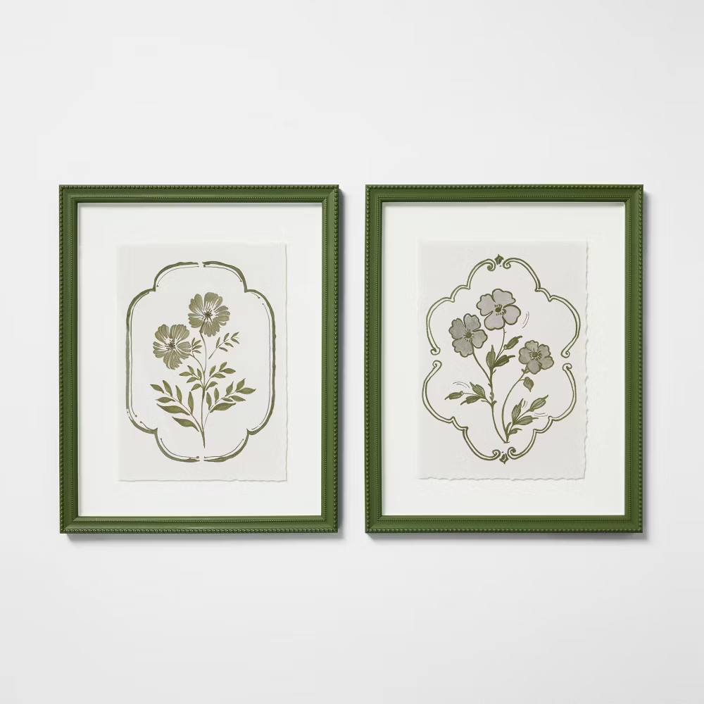 Product Details •This set includes two 16"x20" framed floral prints•Features a modern botanical design in a green tone•Crafted from durable polystyrene for lasting use•Perfect for adding a touch of nature to walls•Dimensions : 20 Inches (H) x 16 Inches (W)DescriptionAdd a touch of nature to your space with this set of two 16"x20" floral print framed arts from Threshold, designed with Studio McGee. These vertical wall art pieces feature a soothing green botanical theme, perfect for modern decor styles. Crafted with a polystyrene frame, each lithograph print is beautifully detailed, offering a fresh and inviting look to any room. Ideal for adding a splash of