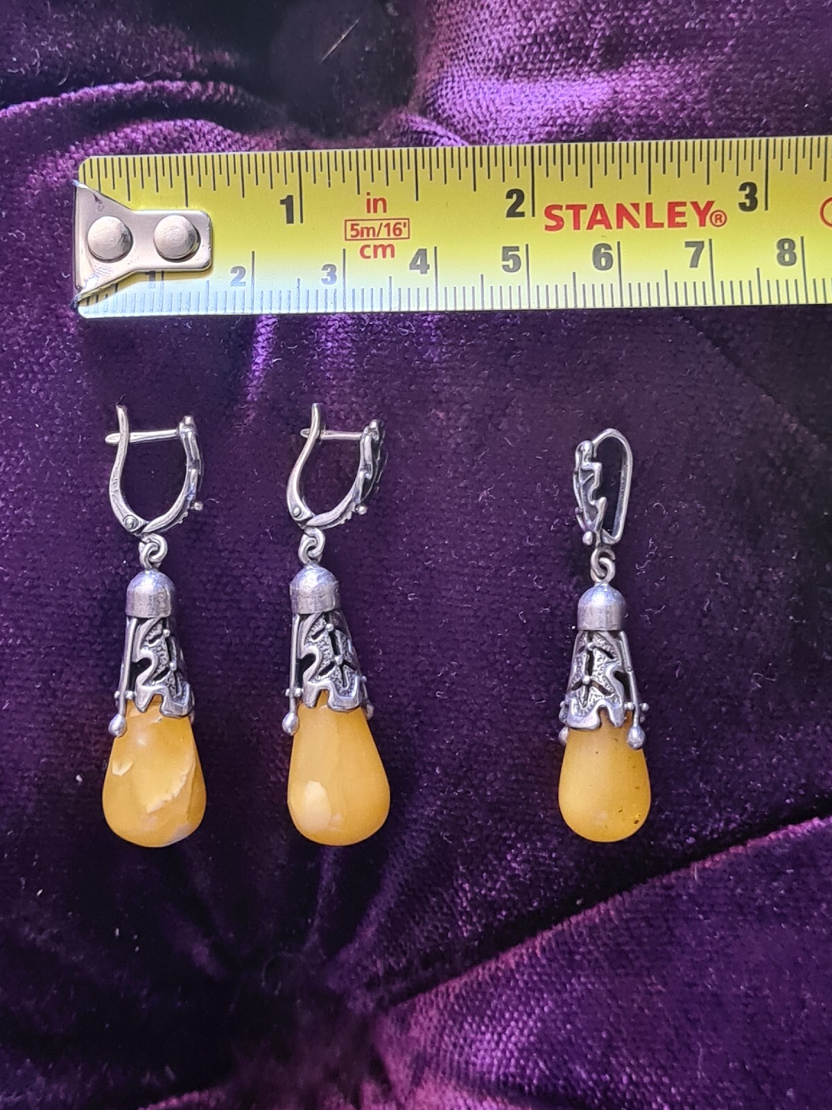 This stunning jewellery set features a beautiful amber drop earring paired with a matching pendant. The set is perfect for any occasion and would make a wonderful addition to any jewellery collection. Crafted with high-quality materials, the earring and pendant are sure to last for years to come. The set includes a stylish pendant that can be worn with any outfit and a pair of drop earrings that are sure to catch the eye. Add this beautiful jewellery set to your collection today and elevate any look effortlessly.