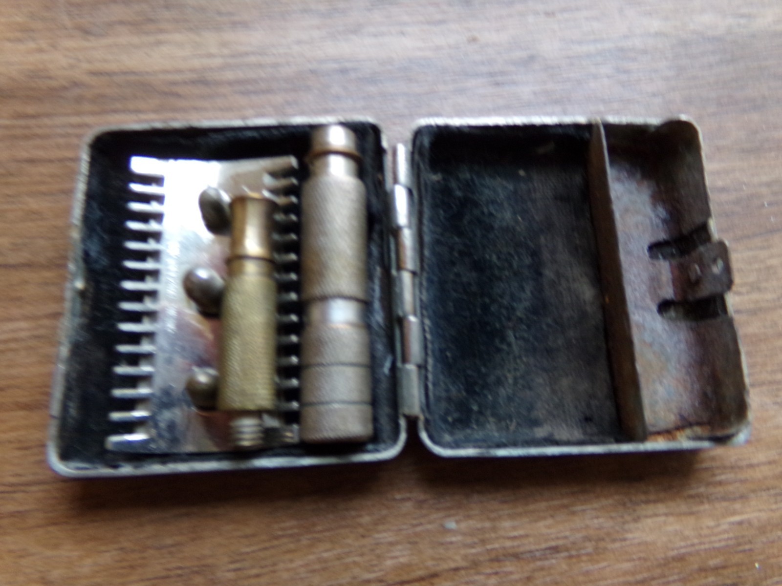 VINTAGE SHAVING CASE, 3 RAZORS,5 BRUSHES,4 BLADE BOXES,AND MORE READ!!!!!! USA