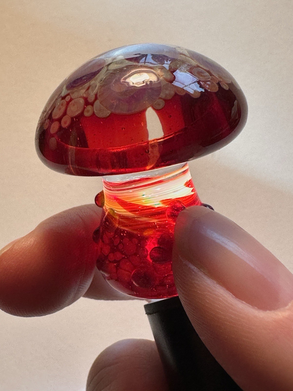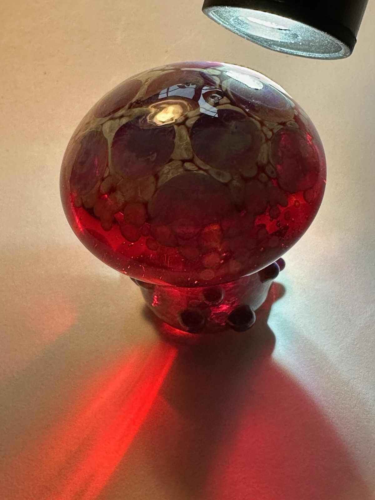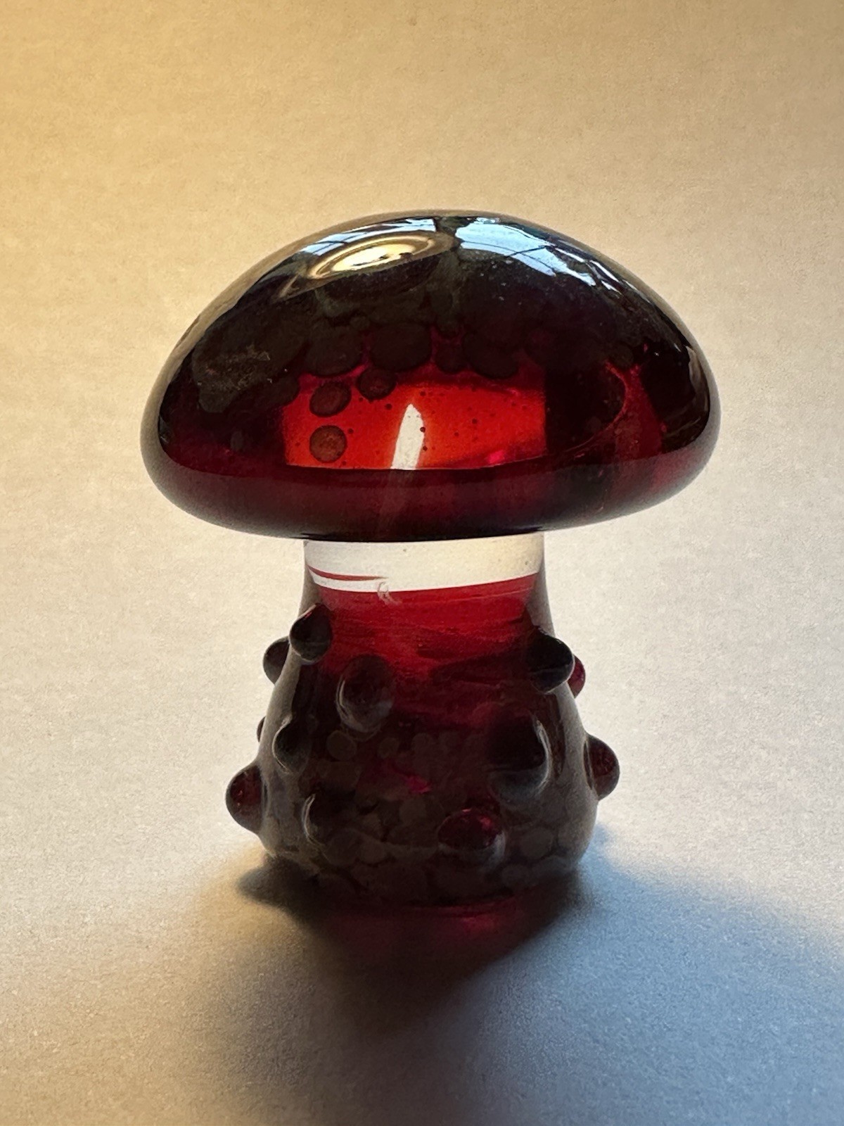 Hand Blown Art Glass Mushroom Figurine Red Purple Abstract Nature Decorative Specs