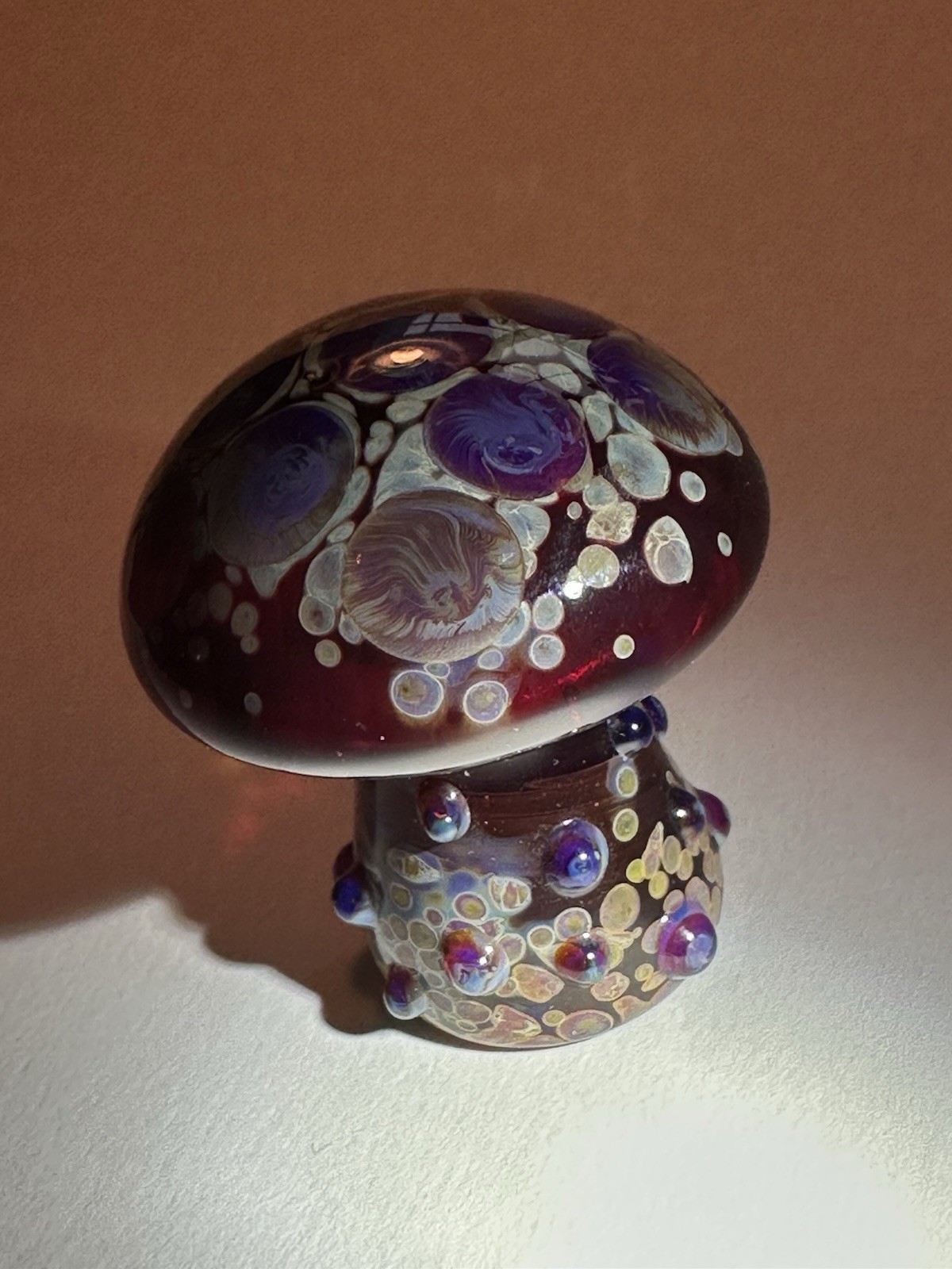 Hand Blown Art Glass Mushroom Figurine Red Purple Abstract Nature DecorativeUnited States Domestic Shipping Only(I currently do not ship to other countries; Shipments remain within one country (USA), eliminating tedious paperwork and border inspections, tariffs etc.) thank you!