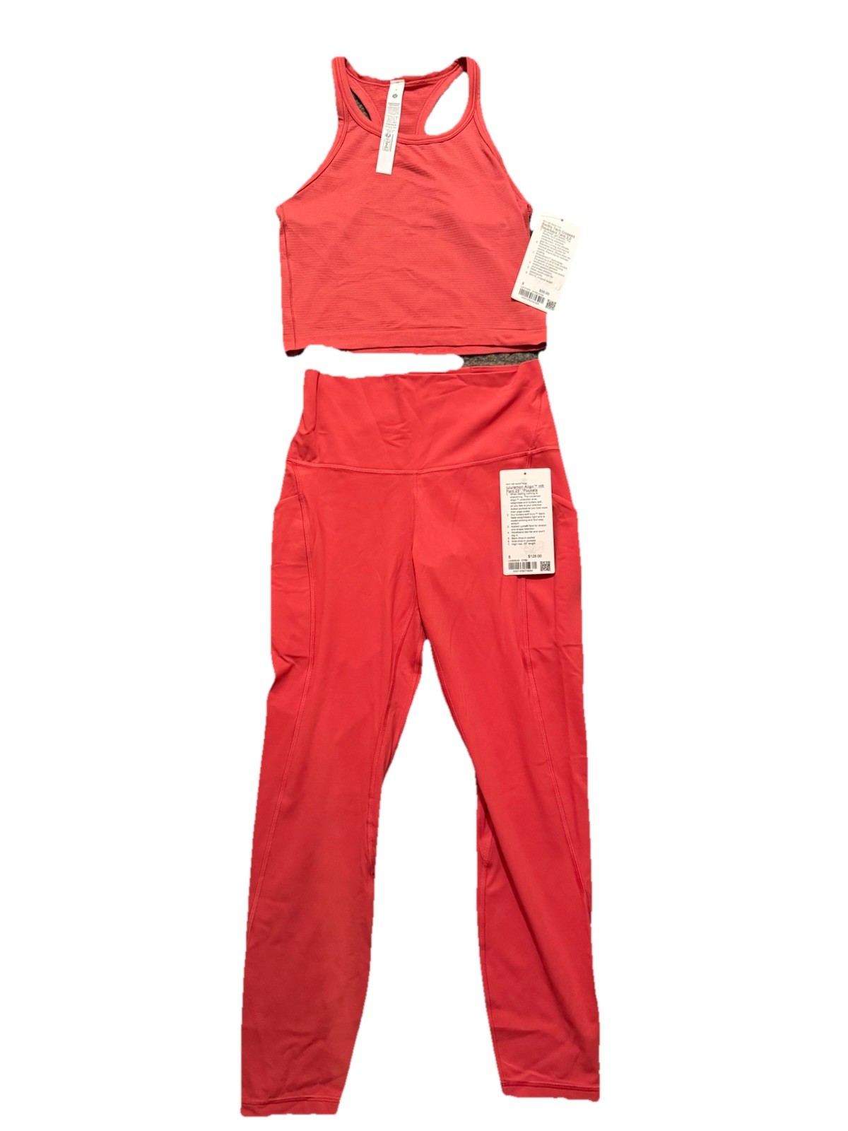 The NWT LULULEMON Red Cropped SWIFTLY Tank Align Leggings HR “25 POCKETS Set in
