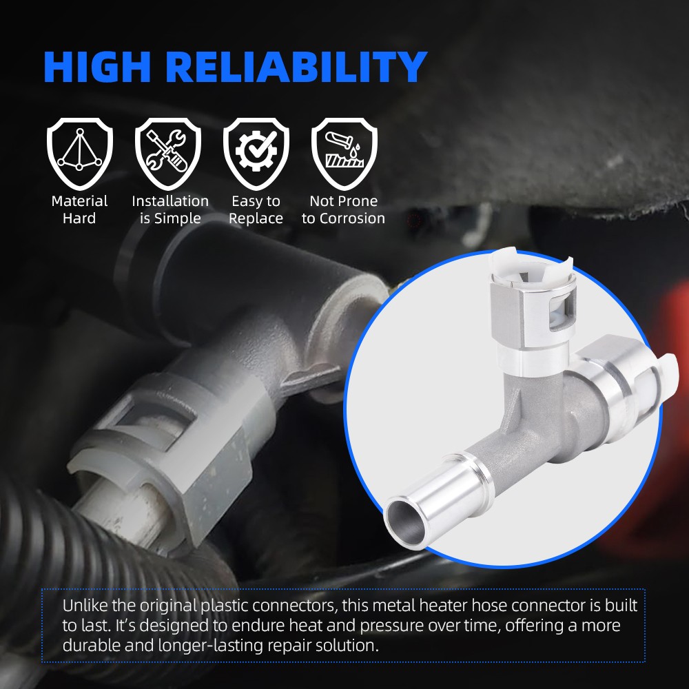 2x Metal Heater Hose Connector Fit For Cadillac Escalade/Chevrolet Silverado【Upgraded Metal Construction】Unlike the original plastic connectors, this metal heater hose connector is built to last. It’s designed to endure heat and pressure over time, offering a more durable and longer-lasting repair solution.【Prevents Leaks】Engineered to resist the heat and wear that commonly cause plastic connectors to crack and fail, this leak-resistant connector helps maintain the integrity of your vehicle's HVAC and coolant systems, ensuring smooth operation without unexpected leaks.【Direct Replacement】Manufactured to precise OEM standards, the 800-413HP connector and 800-414HP connector are direct replacement for the original plastic connector. It fit for Cadillac, Chevrolet, or GMC vehicle without the need for modificatio【Performance Tested】This upgraded connector design has been rigorously pressure-tested to ensure reliable, long-term performance, giving you peace of mind knowing that your repair is built to last.【Package Include】1 x 800-413HP Heater Hose Connector, 1 x 800-414HP Heater Hose ConnectorPAYMENTWARRANTYABOUT USCONTACT USNOTEPAYMENT1.We accept eBay payment and other payments through eBay.WARRANTY1.Please inspect your order upon receipt. 2.No damage claims will be honored after 14 days of delivery. 3.All item we sold come with 90 days defective warranty from the date.ABOUT US1.We are a powerful factory producing auto parts.2.We have a professional sales and after-sales team that can provide you with excellent products and services.CONTACT US1. Usually your message will be answered within 1 business day.2. We provide with best service, please buy with confidence. 3. If you have any problems or concerns whatever with your order or products, please message us and give us a chance to assist you before you leave any feedback.NOTE1. International Customers may be subject to customs fees that are out of our control.2. International shipments may take longer than the eBay specified time due to country customs and flights.