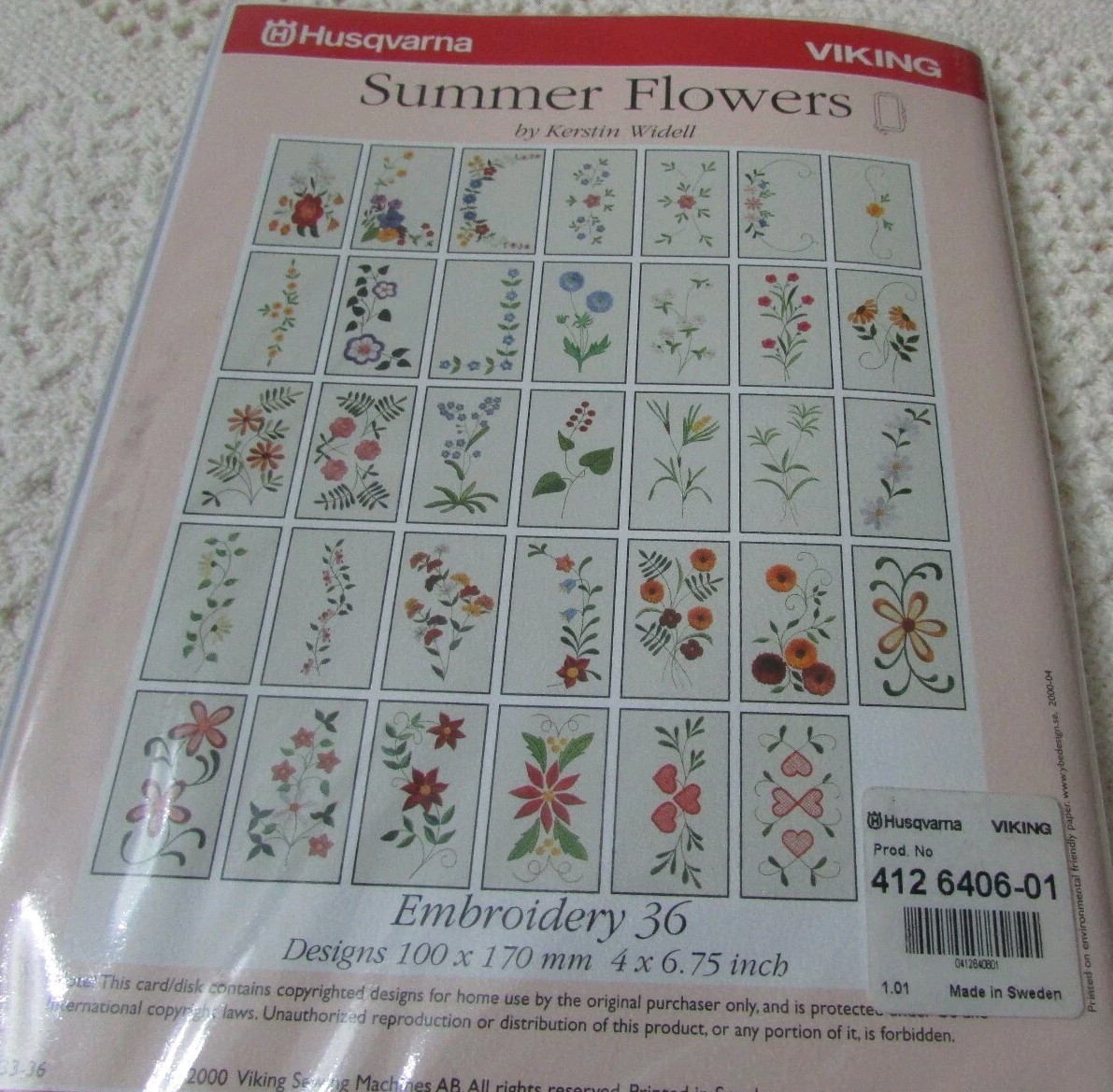 Husqvarna Viking D CARD Set #36 SUMMER FLOWERS by Kerstin Widell Designer 2 II