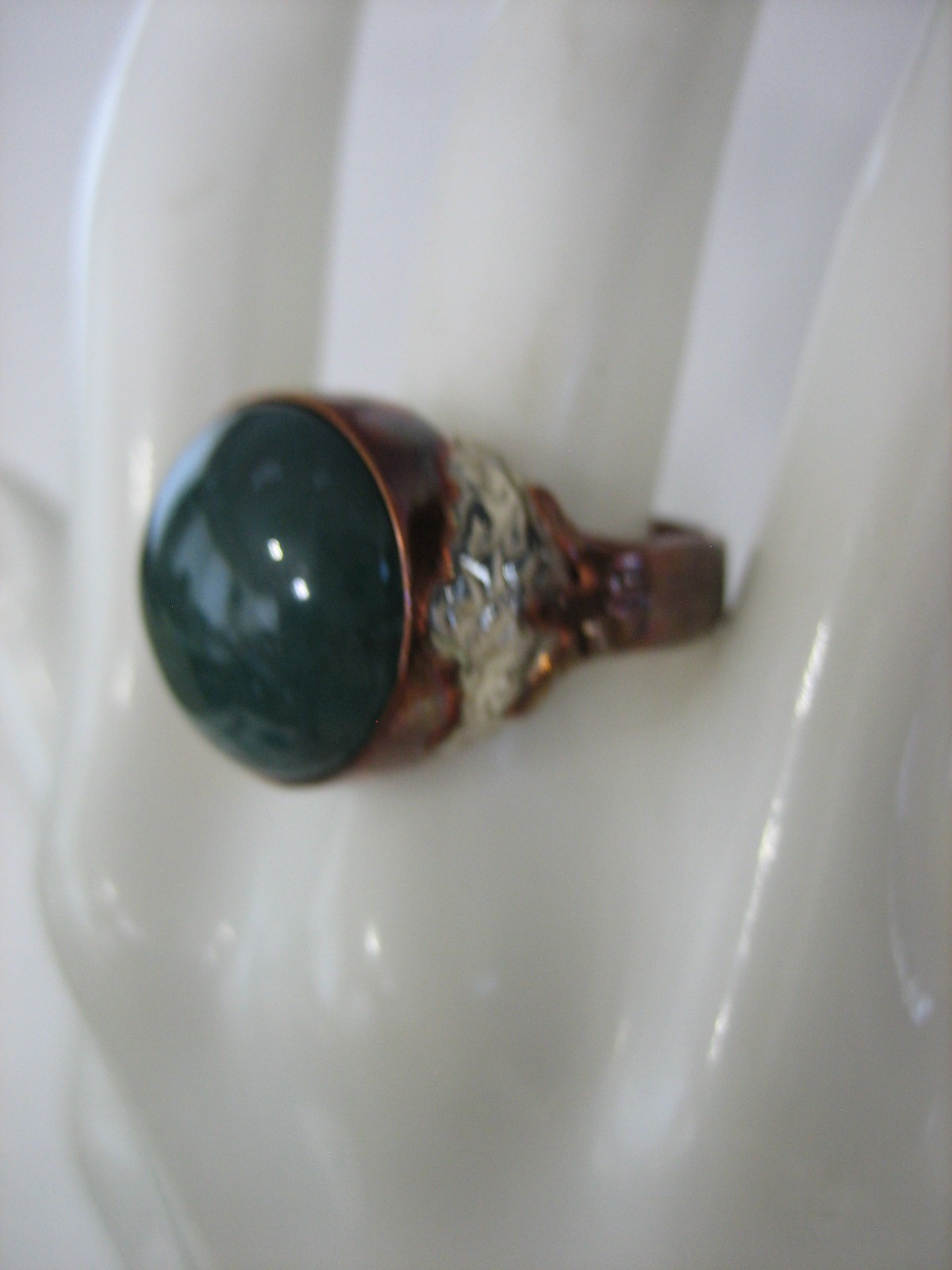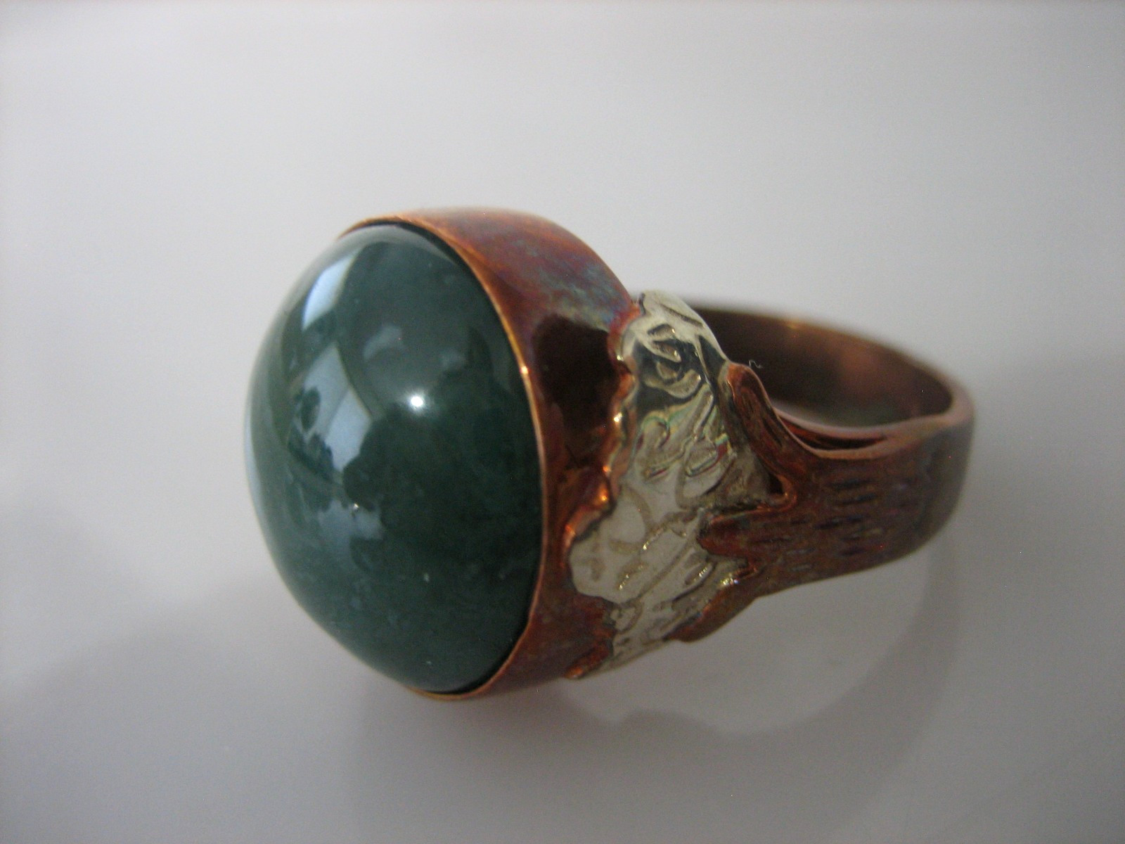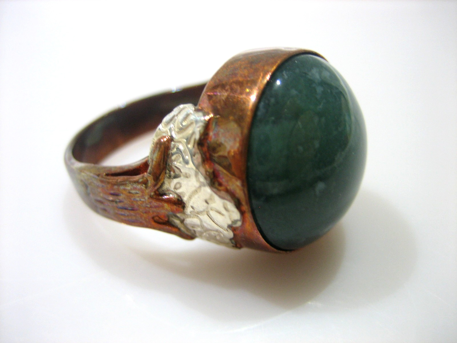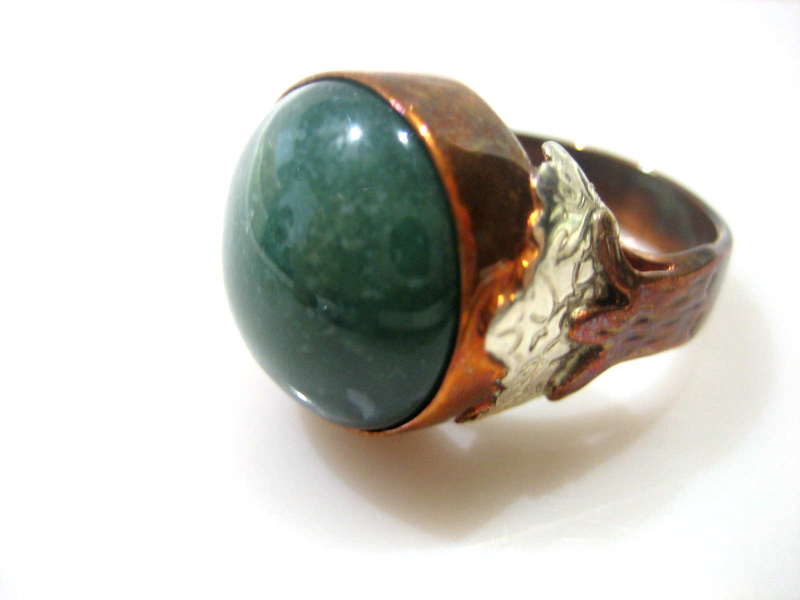 JAY KING SIGNED DTR COPPER OVER STERLING SILVER GREEN STONE SIZE 8.5