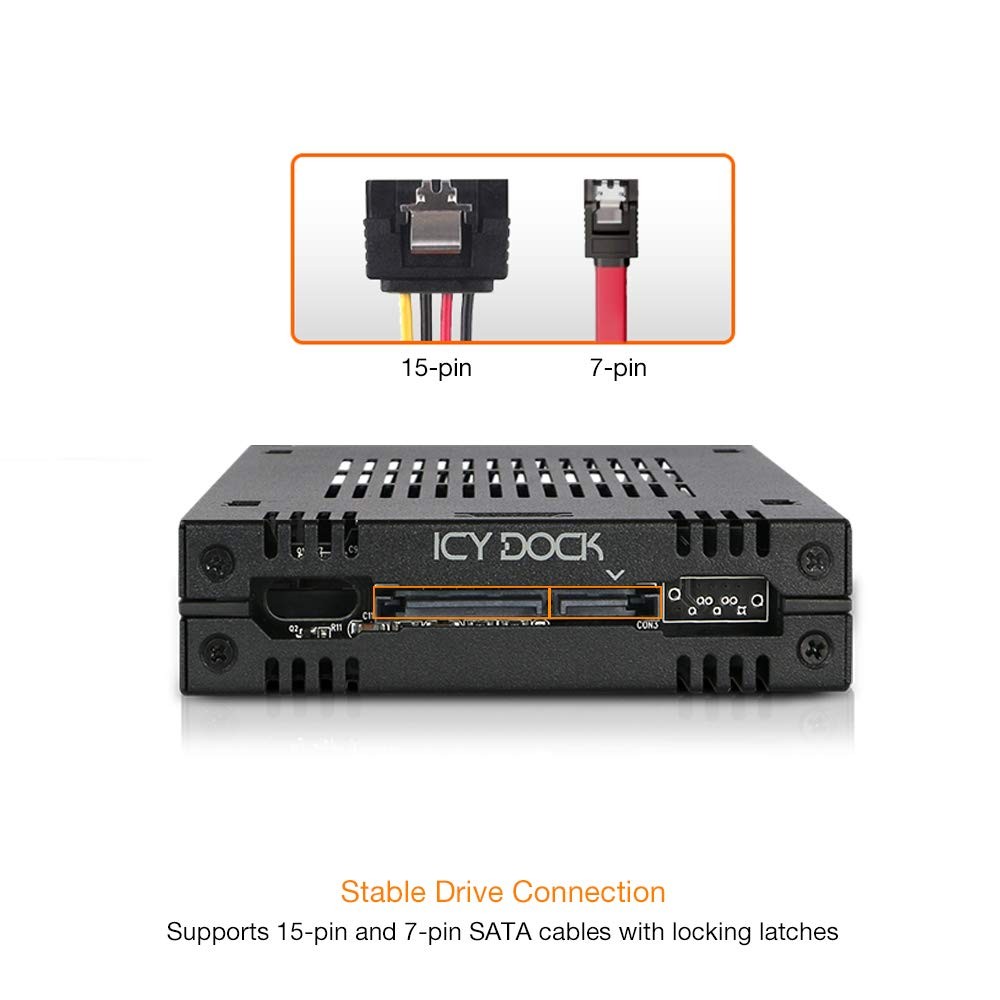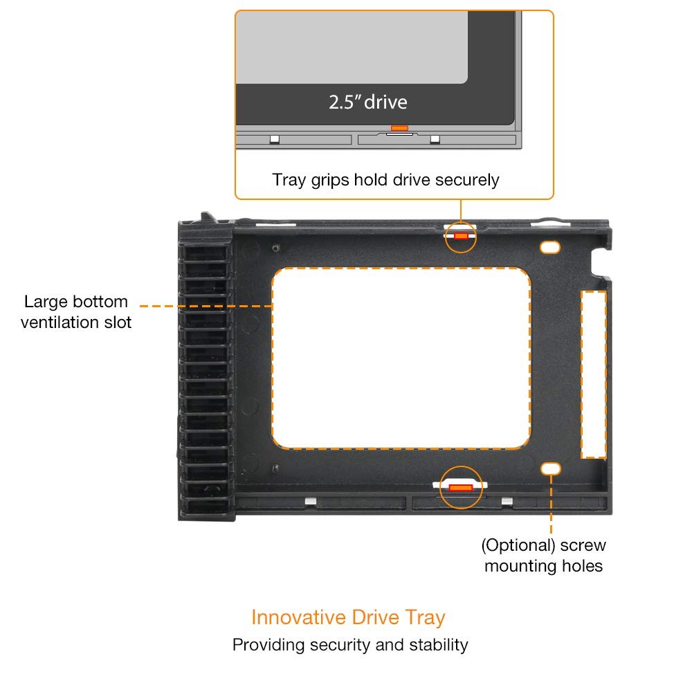 Rugged metal housing with durable ABS caddies for maximum security and protectionFits 1x 2.5" SAS/SATA HDD/SSD, and installs into a single 3.5" external bay (floppy bay)Supports 2.5" drives with 5mm, 7mm, 9.5mm, 12.5mm, and 15mm heightMulti-Flow Technology - Provides excellent passive coolingActive Power Technology - Only powers on when a drive is installed, saving power
