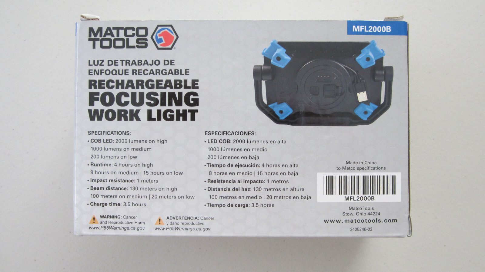 NEW!!! Matco Tools Rechargeable Focusing Work Light - Blue - MFL2000B Specs