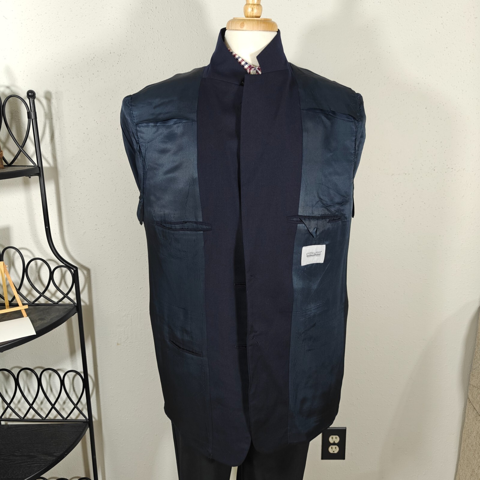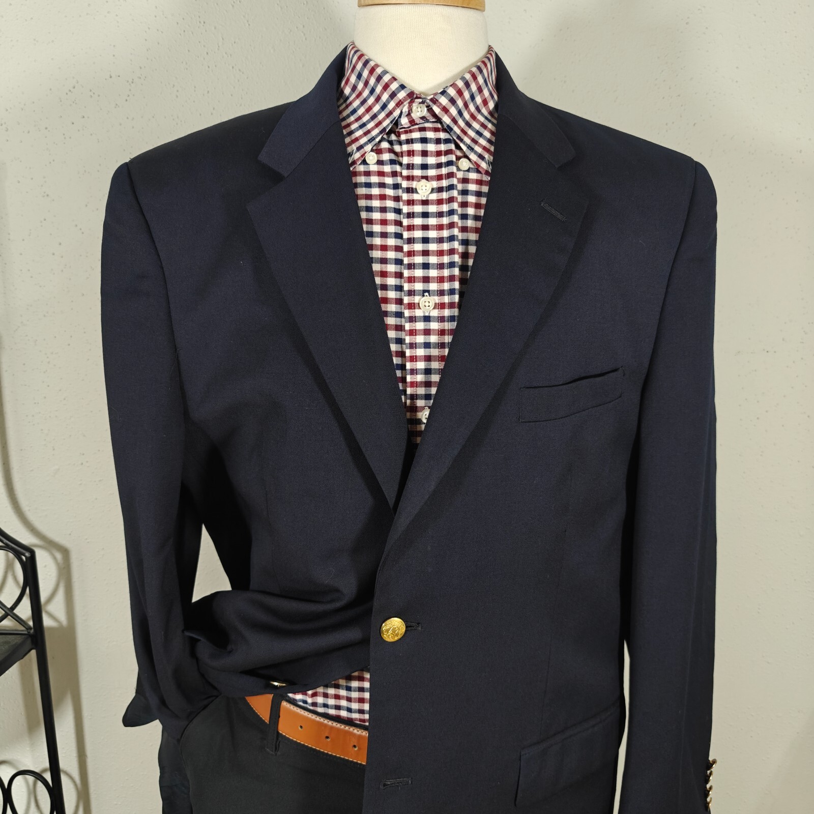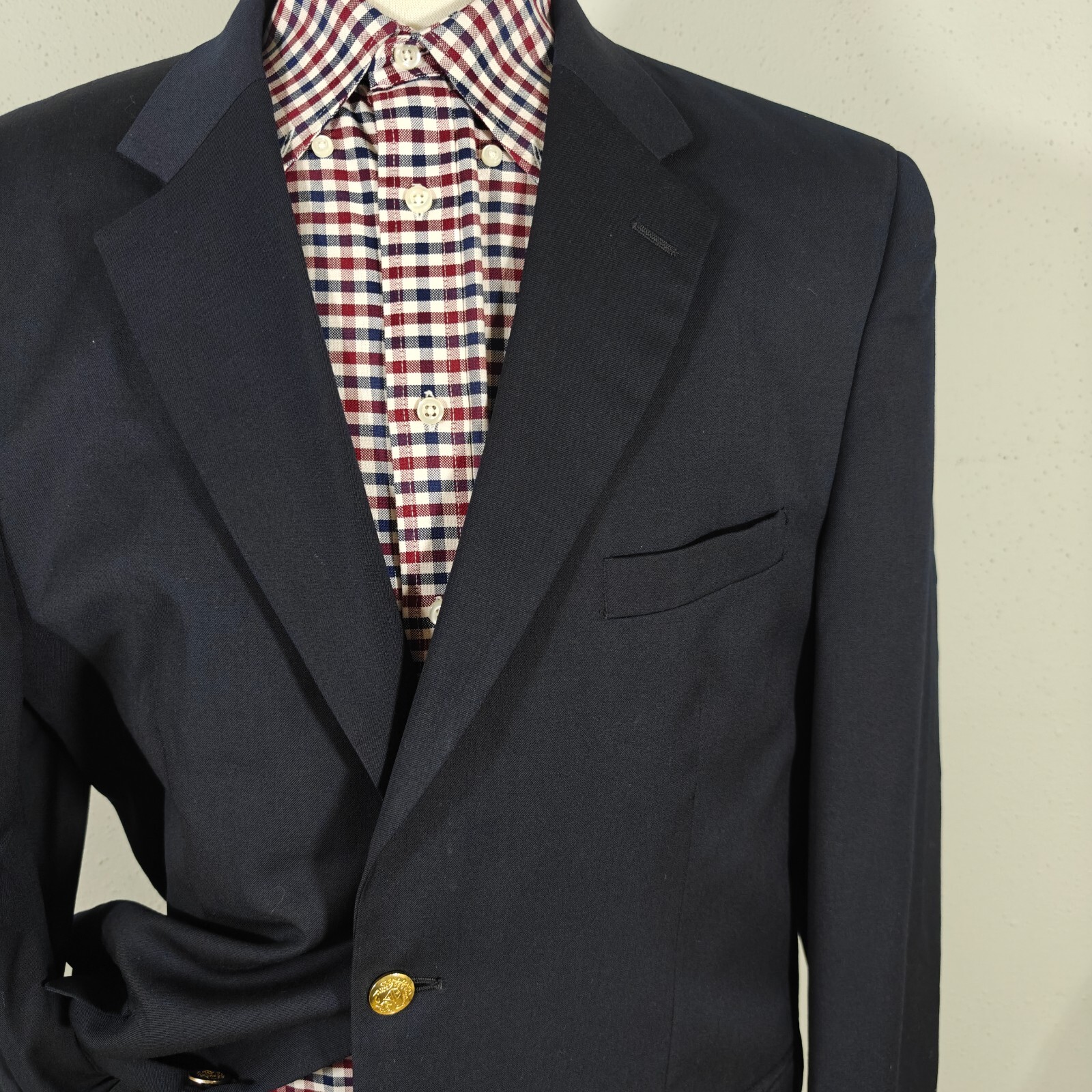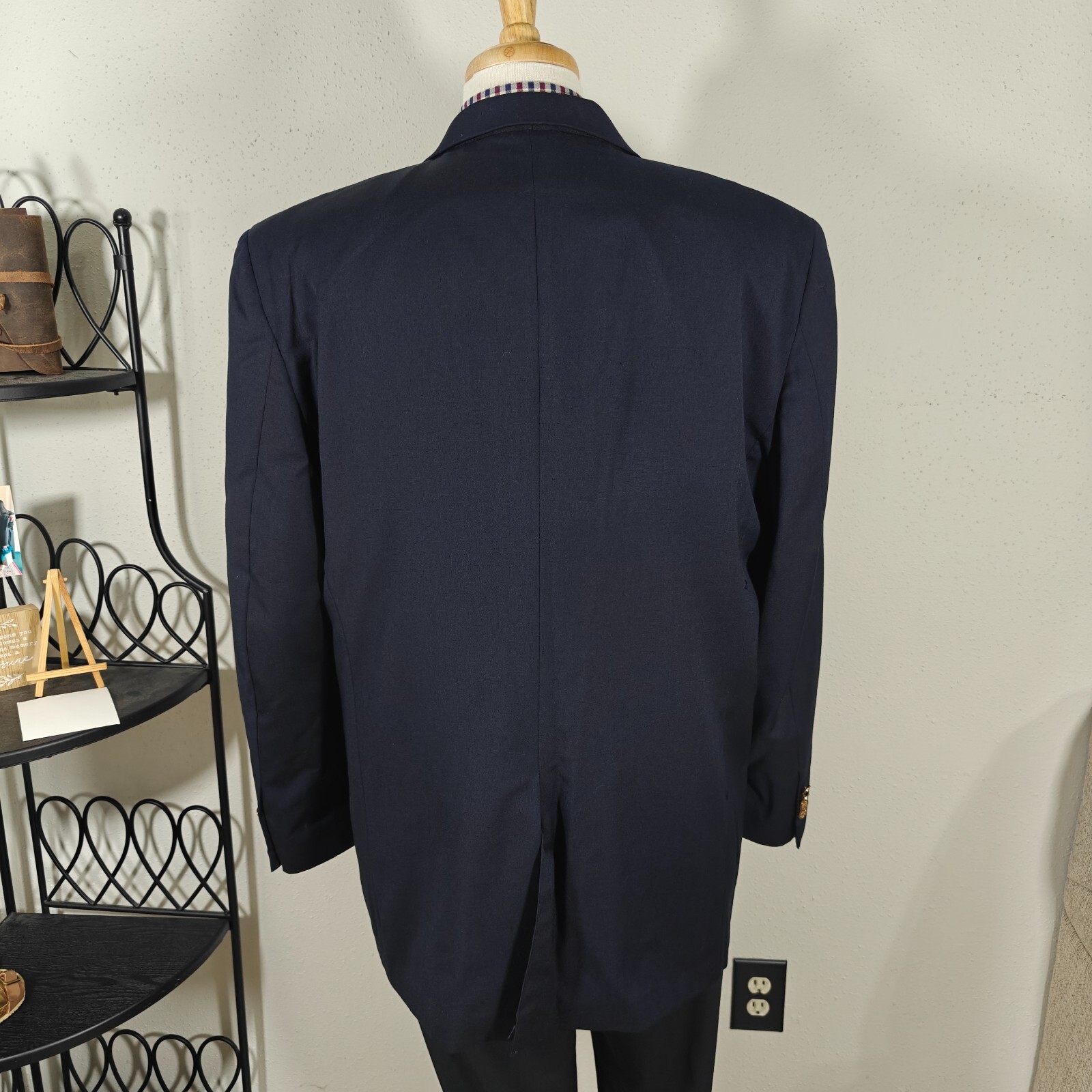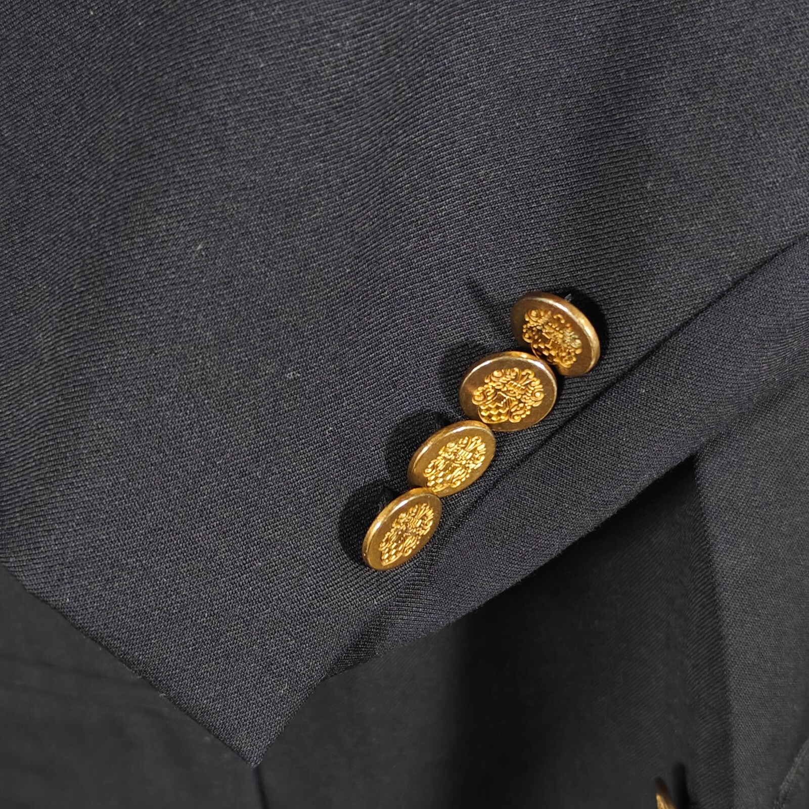 size only, compare the measurements with some of your own items to ensure proper fitment! Remember all Clothing Items may fit differently depending on Brand, Fit, Use or Prior customization. We strongly urge our customer's to check measurements first to guarantee proper fittingMaterial: 100% WoolCondition:Minor hole on the back otherwise GOODColor: NavyMeasurements inches:20-Shoulder--left shoulder seam to right shoulder seam at top rear24-Chest--left armpit to the right armpit across23.74-Waist--width measurement at the natural waist of the jacket from left to right flat26.5-Sleeve--front shoulder seam top to cuff edge on the front33-Rear Length--rear bottom of collar to bottom of jacket