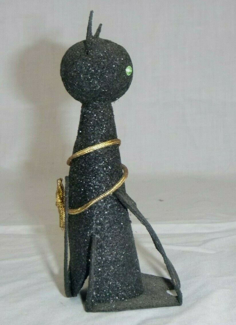 Amazing little mica glitter black cat. A rare glitter "Sophisticat", by Max Factor. Were packaged with perfumes in the 60's. Most were flocked...I've never seen one covered in this glitter before! Perfect for Halloween decor. Marked on the bottom, Made in Japan. measures 5" in height!! Super kitschy fun!