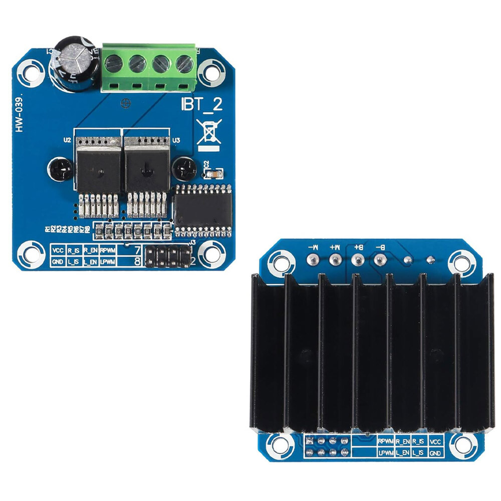 Specification:Double BTS7960 large current (43 A) H bridge driver;5V isolate with MCU, and effectively protect MCU;5V power indicator on board;voltage indication of motor driver output end;can solder heat sink;Just need four lines from MCU to driver module (GND. 5V. PWM1. PWM2);isolation chip 5 V power supply (can share with MCU 5 V);Size: 4 * 5 * 1.2 cm;Able to reverse the motor forward, two PWM input frequency up to 25kHZ;two heat flow passing through an error signal output;isolated chip 5V power supply (can be shared with the MCU 5V), can also use the on-board 5V supply;the supply voltage 5.5V to 27V Package Included: 2 x Double BTS7960B DC 43A Stepper Motor Driver H-Bridge PWM For Arduino smart CarOn Mar 23, 2024 at 22:04:33 PDT, seller added the following information:.dc_tracker_img .dc_tracker_img:last-of-type p:empty+hr hr+span.ebay,hr+*>span.ebay