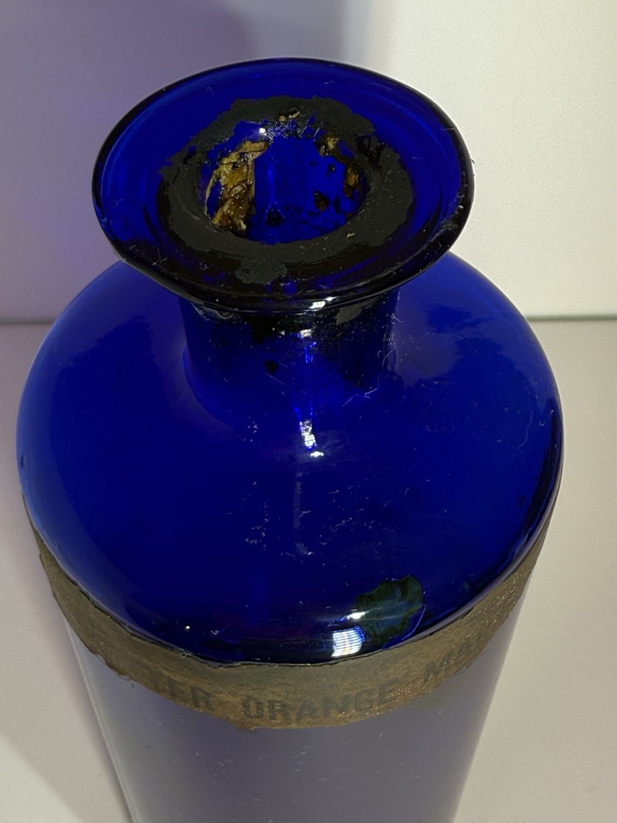 Dodge & Olcott Co. 9” Apothecary Oil Bitter Orange Cobalt Blue Glass Bottle/Jar