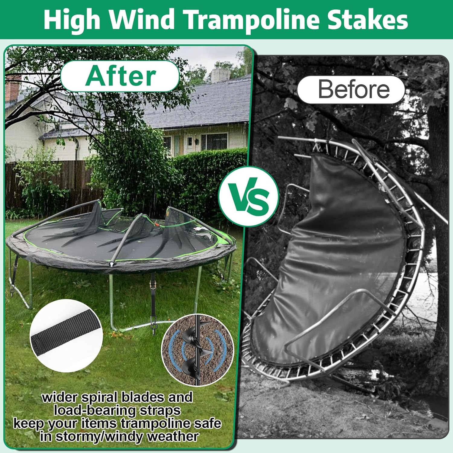 Material Metal Item Weight 8.14 pounds Recommended Uses For Product dog leash anchor for the ground, garden stakes, greenhouse anchors, rv anchors for high winds, shed anchors, swing set anchors, tree hurricane anchors Manufacturer FULE Special Feature Heavy Duty Product Dimensions 18"L x 13"W Size 4PCS Complete Anchor Kit: Includes 4 18'' ground stakes, 1 T-handle, 1 hex wrench, 4 ratchet straps and 8 M8 carabiners. This shed anchor kit is ideal for trampolines, swing sets and canopies, ensuring your outdoor setup stays in place during strong windsHeavy Duty Rust-Proof Material: Our garden stakes are made of high-quality solid steel with a 360° double-sided welded spiral design to increase friction, prevent bending and breaking, and ensure stability. The surface is coated with a rust-proof and corrosion-resistant coating to help you use it in rainy or humid environments without having to replace or re-purchaseTop Wind Resistance: Our kit is designed for severe weather, equipped with webbing made of top-grade nylon and extra stitching, 68-degree R-angle ratchet gear, and a load capacity of up to 800 kg. Weatherproof, tear-resistant, retractable and reusable, it can help you securely fix items in a storm to prevent them from tipping over or moving, no longer worrying about being blown down and hurting peopleEffortless Installation & Removal: Wet the ground, attach a hex wrench to a drill or use the included T-handle to drive the screw stake into the ground and tighten the ratchet strap for a rock-solid grip (anchor length is 17.7 inches after tightening the eyebolt)Multi-Purpos Stakes: These heavy-duty hurricane tie downs sheds anchors have been wind-tested and work on various surfaces, including soil, sand, and lawns. Ideal for tents, greenhouses, playground equipment, dog tie out cable and stake for outside, keeping your equipment secure in stormy or high-wind conditionsCustomer Support: If you have any problems with our hurricane straps for shed kit, please feel free to contact us, we will provide a satisfactory solution within 24 hours Product description Wind Resistant Ground Anchor Kit: Ideal in High Wind and Hurricane Conditions The video showcases the product in use.The video guides you through product setup.The video compares multiple products.The video shows the product being unpacked. ground anchors screw in Merchant Video Whether you are a family camper or an outdoor sports enthusiast, this ground anchor kit is your best choice for tying down trampolines, tents, awnings, sheds, trees, swings, carports, gazebos, cabins, garages, stumps, slides, canopies, shelters, campers, flagpoles, greenhouses, RV's, dogs and more! 4 x 18'' Ground Stakes:Made of thickened carbon steel, of which the 360-degree screw tabs are fully welded to go deep into the ground without breaking, providing strong support. Attach the wrench to a drill or use T-handle to drive the screw stakes into the ground for easy installation and removal 4 Ratchet Straps + 8 M8 Buckles: The webbing straps are made of nylon and 68 degree R-angle ratchet gears, with a weight capacity of up to 800 kilograms, and can be freely retracted, which can help you to reinforce your items in storms and prevent them from moving or tipping over. The Trampoline Stake Kit includes stakes and ratchet straps with a weight capacity of up to 800 kg and is designed to withstand strong winds, ensuring that whatever the wind, you can securely hold your items in place to prevent them from tipping over or moving in a storm Ground Anchor Driven Into Soil Ring Bolt Attachment M8 Buckle Adjust Strap Length To Tighten Buckle To Secure The Other End ABOUT US We offer the best prices around on high quality products. Our E-store includes media such as books, movies, music and games while offering electronics, toys, sporting apparel, clothing, tools, general home, garden items and more. SHIPPING We are always working hard to ensure your package arrives as soon as possible. Please understand that some factors like weather, high postal traffic, and the performance of shipping companies are outside of our control. We offer free shipping to the lower 48 states and ship within 2 business days of payment, usually sooner. We do not accept P.O. Boxes. Please provide a physical address. RETURNS We offer a 30-Day Return Policy on items which you are not completely satisfied with. You have the option for a full-refund or an exchange of the item. No returns are available on items shipped outside of the USA. PAYMENT We accept PayPal. CONTACT US This page content is yet to come Please ad us to your favorite seller and visit again later Thank You CUSTOMER SATISFACTION We try our very best to make sure every customer is completely satisfied. If there's a problem, message us! We're happy to help.