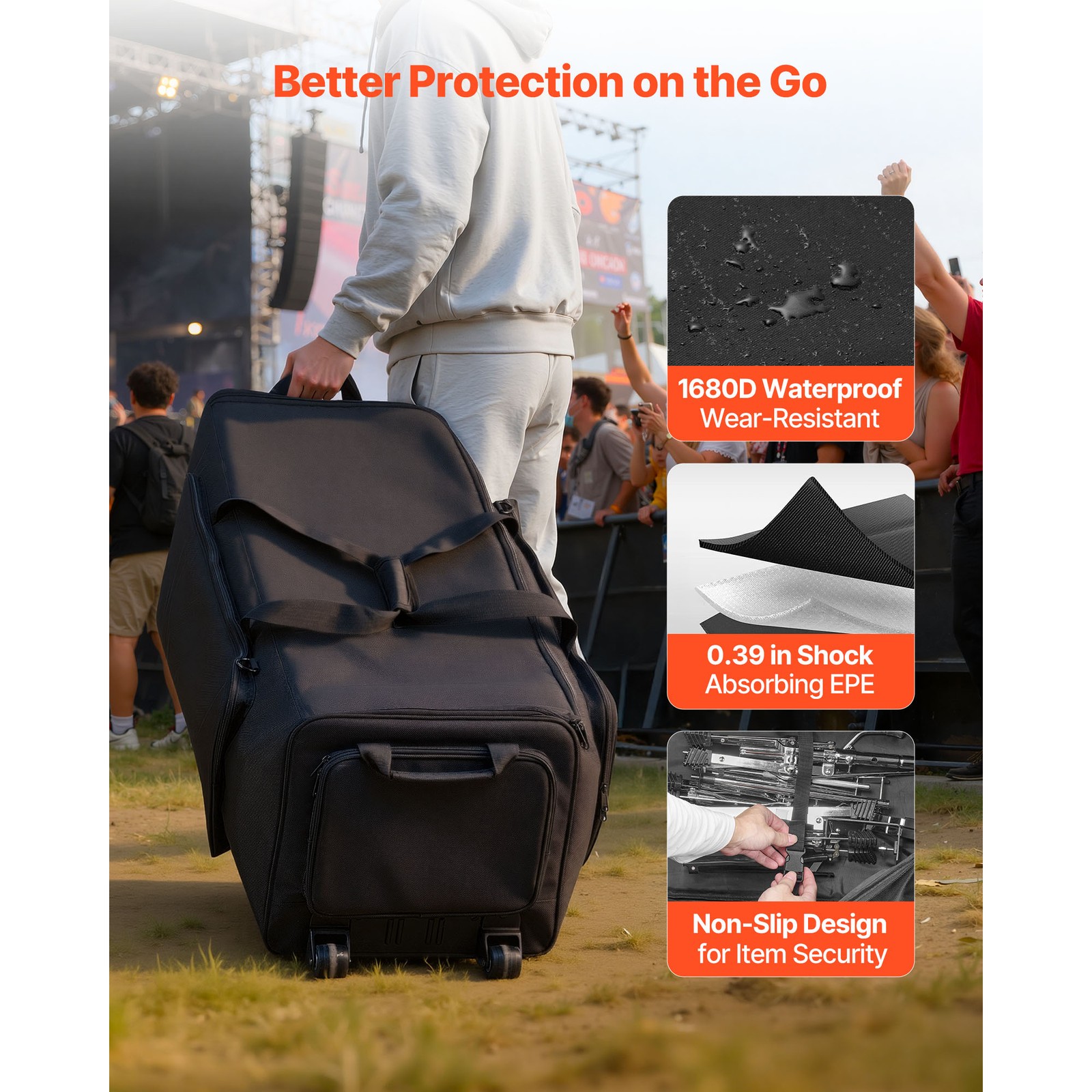 accessories like music stands, sheet music, pedals, and cables. It ensures your items are well-organized and easily accessible whenever needed. Multiple Carrying Methods: This drum stand accessory bag offers three convenient ways to transport your gear, making it suitable for drummers, musicians, and travelers. The bottom wheels ensure smooth rolling, the handle allows for easy lifting, and the shoulder strap provides a hands-free carrying option. Durable and Reliable: This drum equipment carrying bag is crafted with reinforced stitching to improve seam durability, ensuring it withstands extended use. The sturdy zipper is designed to keep your items secure and operates smoothly without splitting or slipping, even when subjected to significant tension. SHIPPING ABOUT US PAYMENT RETURNS CONTACT WARRANTY Welcome to our eBay store. As a leading and emerging company in manufacturer and exporting business, we are specialized in Business and Industrial Products, Sporting Goods, Pet Products, Home and Garden products for more than 10 years. We believe that it is our vision and mission to provide innovative products with best service and competitive price to satisfy you. Our goal is to make sure that you can find exactly what you are looking for and make it easy for you to place your orders. We accept PayPal payment,PayPal Credit,Credit card or debit card and so on.Payment should be completed within 4 (Four) days of auction closing. Or unpaid dispute will be filed for closing auction.We will leave a positive feedback immediately after payment is received. We appreciate a positive feedback as much as you do. If for some reason there is any issue with the purchase, please contact us prior to leaving feedback, we will be glad to work together and provide a satisfying solution. Please be aware that PO Box cannot receive items,please DO NOT fill in the PO Box address. DELIVERY DAYS: 3-7 BUSINESS DAYS 3 BUSINESS DAYS SHIPPING OUT SHIP FROM CA & TX & NJ & GA & NC &OR WAREHOUSE California Warehouse: City of Industry, CA Texas Warehouse: Houston, TX New Jersey Warehouse: Perth Amboy, NJ New York State Warehouse: Perth Amboy, NJ Georgia Warehouse: Austell,GA North Carolina Warehouse: Grove NC Oregon Warehouse: AIRPORT WAY Portland,OR All of our items are backed with a 30-day return policy. We ensure all our items are new and in excellent condition prior to shipping. In case you receive the item that is not to the standards above, please contact us via e-Bay messages. All returns must be in new original condition as received and should be shipped with delivery confirmation Please note that all returns must be pre-approved by us. Unauthorized returns will not be accepted. If you need to return, please check twice to confirm the item not work and contact our customer service representative, let us know the detailed problem and send us some pictures for confirmation. We ONLY accept returns with original package. Please make sure that item has NO man-made sabotage. Used items will not be accepted for return. Email Customer Support: 9:00am-2:00am PST Sunday-Friday All emails will be responded to within 12-24 hours This item comes with 12 months Warranty from the date of customers purchased it. Special circumstances will be listed clearly in the listing. If your item has been damaged in transit or become faulty in warranty period, please email us with pictures or video to show the problem. Please do check everything carefully after you received the parcel, any the damage except DOA (Dead-On-Arrival) would not be covered if it's your fault. Replacement products are provided with the same warranty as the returned products. Convenient for Transport This wheeled drum hardware bag is thoughtfully designed with a spacious interior and organized compartments. Built to resist shocks and water, it serves as a reliable solution for transporting your equipment during performances or travel. Designed with your convenience in mind! This drum hardware carrying bag is easy to maneuver, making it suitable for both men and women to push or pull effortlessly. This drum hardware bag offers a practical solution for transporting and storing your equipment, designed to fit comfortably in your vehicle's trunk. This drum stand accessory bag is designed with versatile carrying options, including smooth-rolling wheels for easy mobility, a hand-carry handle for quick access, and a shoulder strap for hands-free convenience, ensuring hassle-free transportation. Perfect for transporting drum equipment to events like concerts, weddings, performances, or casual gatherings with friends, this carrying bag is suitable for a wide range of uses. Features & Details Ample Storage: This drum hardware bag with wheels offers an interior dimension of 35.4 x 13.8 x 12.6 inches, making it suitable for accommodating a complete set of drum stand hardware. It ensures safe storage for your equipment, such as cymbal stands, snare stands, hi-hat stands, and pedals. Enhanced Protection: Crafted from a durable, scratch- and wear-resistant material, this bag is built to last. The thickened EPE padding combined with secure fixing straps effectively cushions your drum hardware, safeguarding it from impacts and preventing scratches during transport. Versatile Storage Options: Designed with various compartments, this drum hardware bag provides ample space for storing smaller