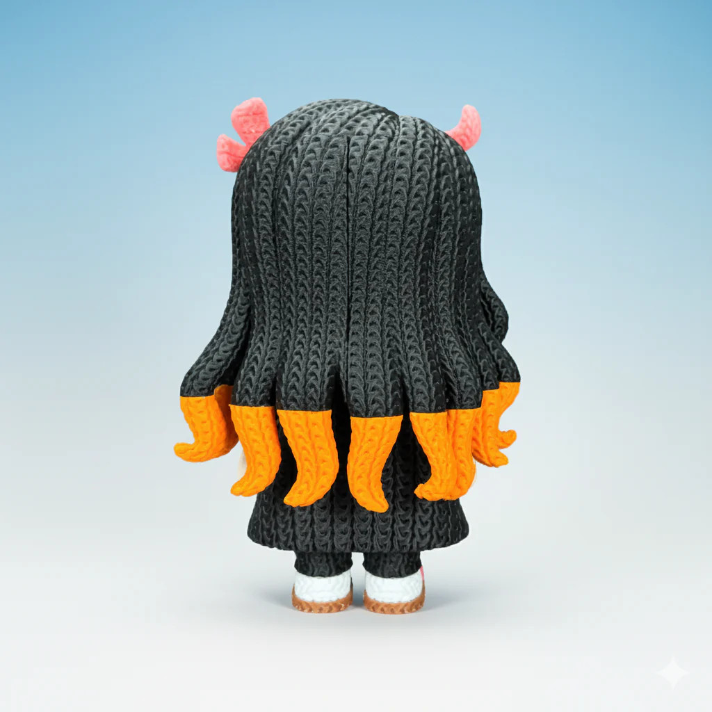 Add a beloved anime character to your collection with this Nezuko-inspired 3D printed figure featuring a crochet-style texture. Designed to resemble a handmade yarn plush, this figure is actually 3D printed with a detailed crochet-style pattern, giving it the cozy appearance of amigurumi while remaining a solid and durable display piece. This unique design blends the charm of crochet-style art with modern 3D printing, making it a standout collectible for anime fans and figure collectors. Perfect for anime displays, gaming setups, desks, shelves, or collector collections. Features • 3D printed figure with crochet-style texture• Inspired by the iconic anime demon girl character• Durable lightweight PLA plastic• “Crochet plush look” but solid printed figure• Great for anime shelves, desks, or gaming room décor Perfect For • Anime fans• Manga collectors• Desk or shelf display• Anime or gaming room décor• Unique fan art collectible Important Note This item is fan-inspired art and is not an official Demon Slayer product. It is not affiliated with or endorsed by the creators or production companies.