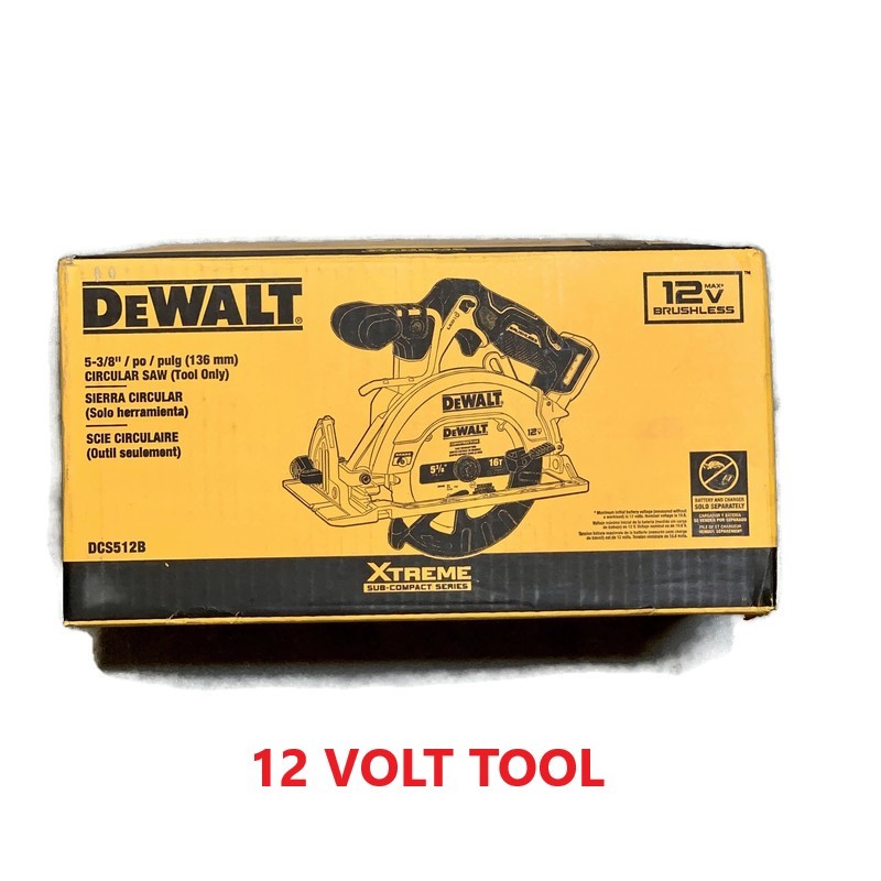 body h1, h2, h3, h4, h5, h6 a, a:active, a:hover, a:visited td div.footer > > a @media (min-width:768px) , } @media (min-width:992px) ,.col-md-6 } @media (min-width:1200px) ,.col-md-6 } , , > li > li > a > li > a:hover, > li > a:focus > li > a > img @media (min-width:768px) } , , @media (min-width:768px) } , , .in @media (min-width:768px) .collapse .in } @media (min-width:768px) } , @media (min-width:768px) } > li > a @media (min-width:768px) > li > li > a .navbar-right:last-child } @media (min-width:768px) } •DEWALT DCS512B XTREME 12V MAX 5-3/8 in Brushless Cordless Circular Saw (TOOL ONLY)•(1) DCS512 5-3/8 in. Circular saw•(1) 5-3/8 in. Saw blade•(1) Blade change wrench•(1) Optional dust chute•(1) Rip guide•(Battery and Charger Sold Separately)DCS512B-NO Get more done throughout your work day with the XTREME 12V MAX 5-3/8 in Brushless Cordless Circular Saw. Built for consistent, professional results, this Circular Saw helps you execute fast, accurate cuts in a wide range of materials. Move about your work space freely as you maneuver this compact tool to cut at the angle you need with its tool-free, adjustable bevel capacity. Get enhanced visibility in low-light spaces with the integrated LED and store when the project is complete using the rafter hook. Minimize accidental cuts when using the XTREME 12V MAX 5-3/8 in Brushless Cordless Circular Saw with its automatic stop function that halts the blade when the trigger is released. •OPTIMIZED EFFICIENCY: Do more with the high-output brushless motor that delivers enhanced cutting performance compared to brushed motors•HIGH MANEUVERABILITY with the saw ins compact design•PRO-GRADE CUTS: 5-3/8 in. blade