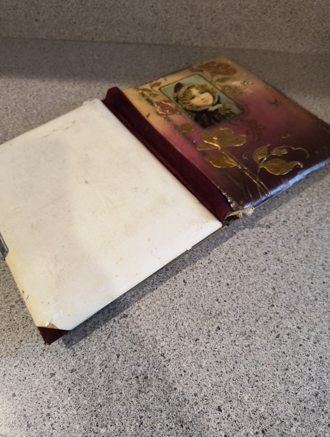 Antique Victorian Photo Album Young Girl Empty 10.5" x 8.5" x 2"