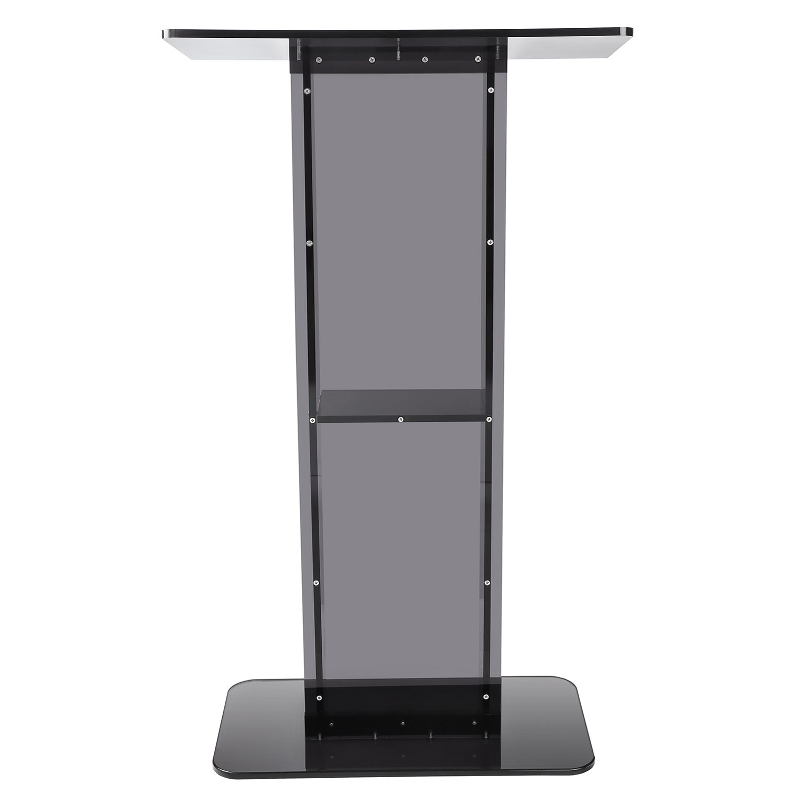 VEVOR Podium Stand 47" Acrylic/Wood Podium with Storage Shelve Black/White/Brown