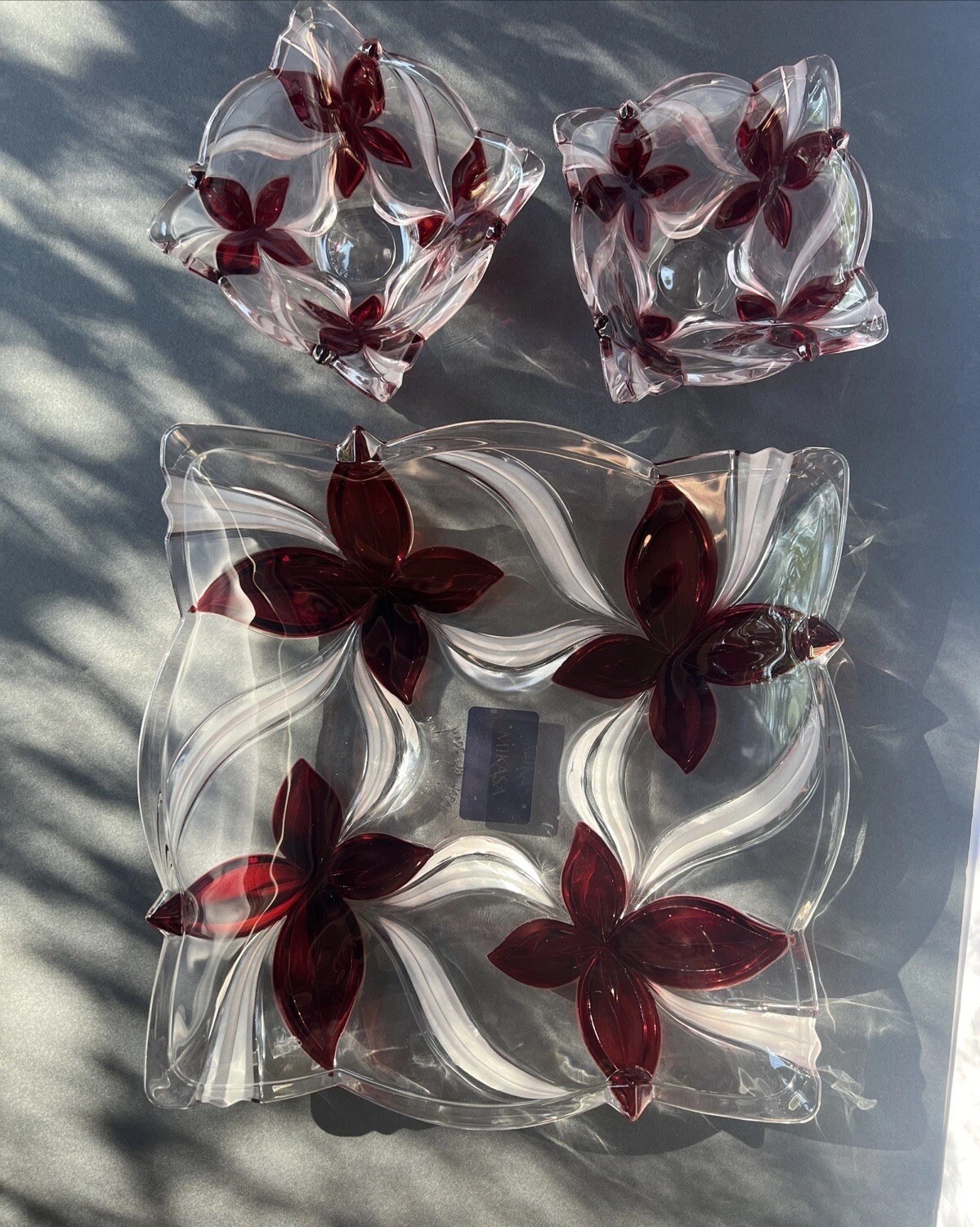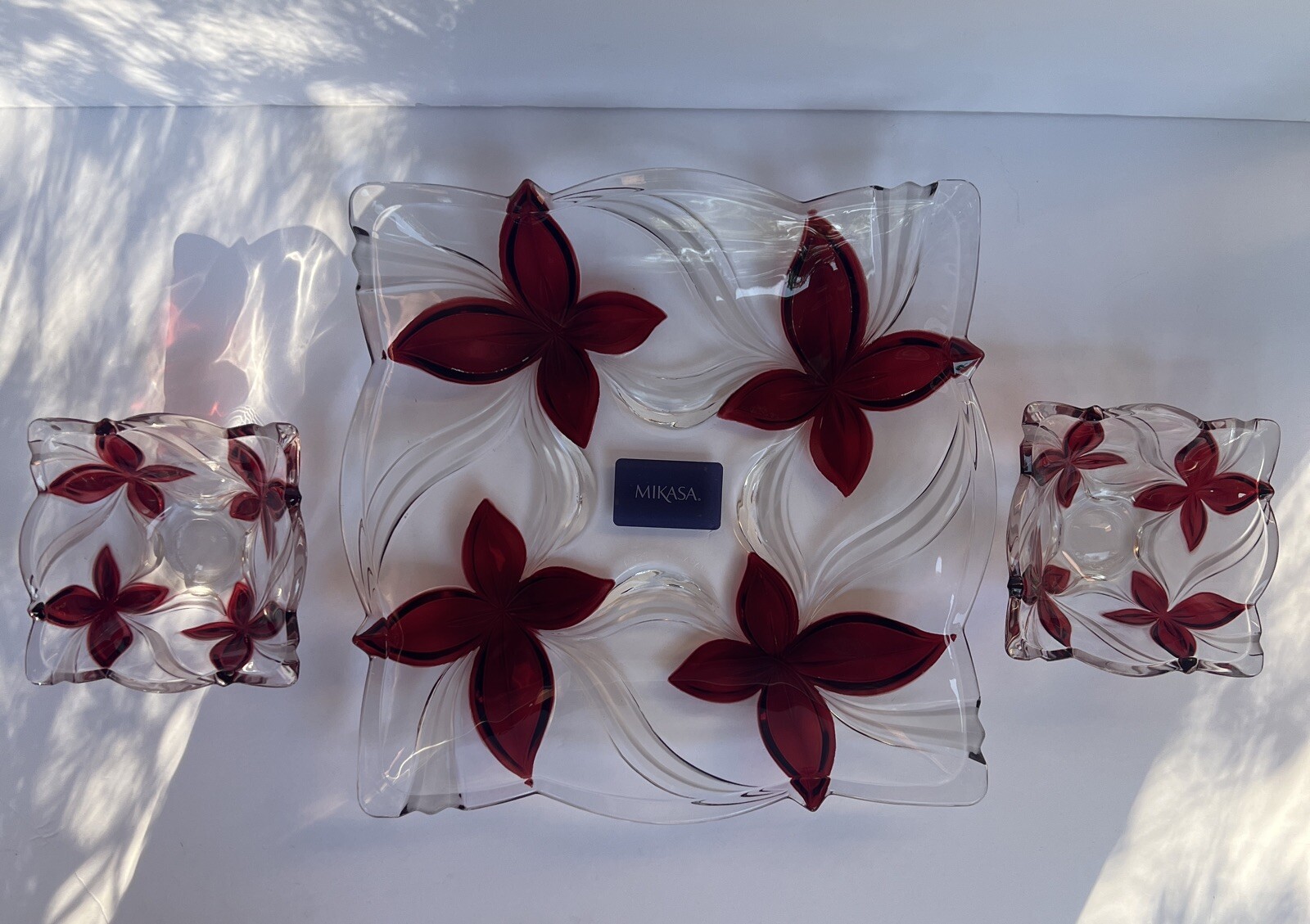 Mikasa Angelina Ruby 3 Pc 11.25x11.25 Christmas Serving Platter 2 Small Bowls