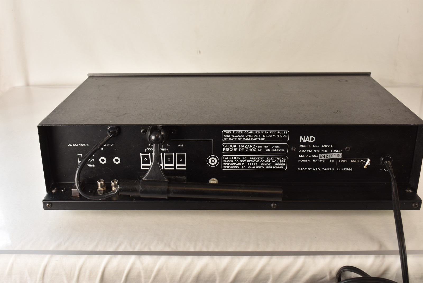 Vintage NAD 4020A AM/FM Stereo Tuner Component as pictured.Very good used condition. Tested by this AV-specialist seller and working perfectly. Good cosmetics but with light signs of use on many surfaces. See photos.Note: Item condition details are located in the "seller notes" section above. Item will be well packed to arrived to you in the condition shown. Items ship in 1-3 business days. Please make special requests before purchase. I ship to standard addresses in the Contiguous US only. Seller will select the shipping service but guarantees shipping service of the same tier or faster than the one the buyer selects. Direct signature is required for some purchases. All items are strictly Buy-It-Now for the price given. I do not accept offers on my items. Thank you!INTERNATIONAL SALES: I ship through EBay's International Shipping Program only.