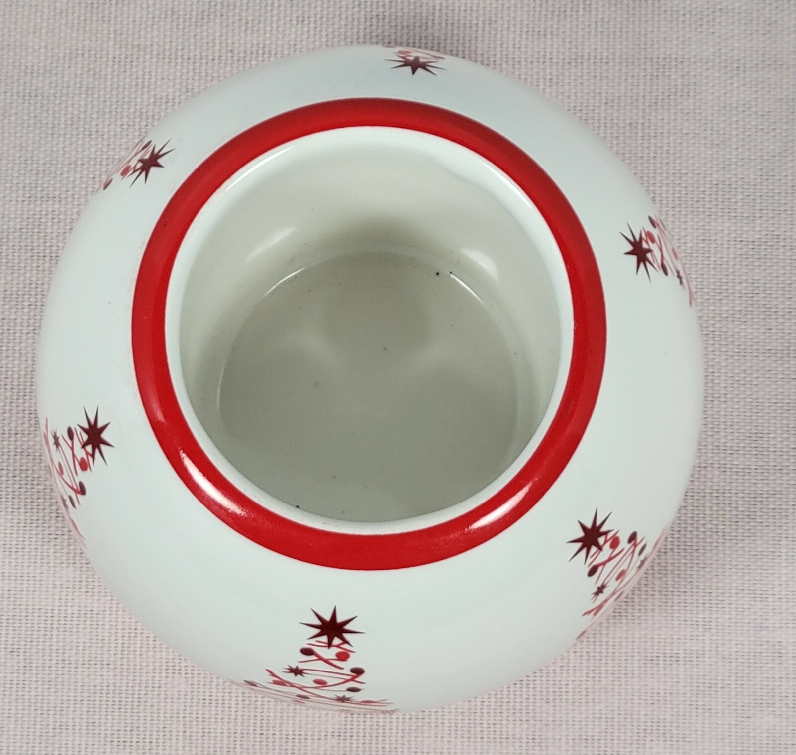Ceramic Round RED TREES Votive Holder 4" . Holds votive Yankee Candle holiday