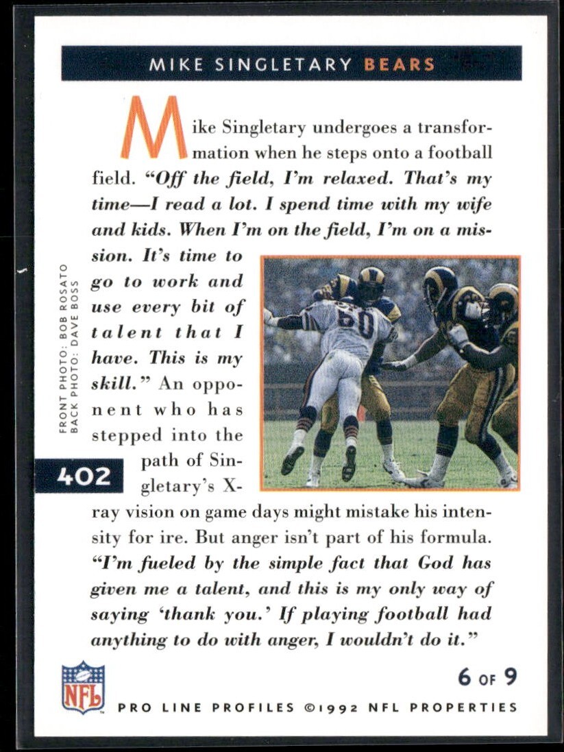 1992 Pro Line Profiles #402 Mike Singletary HOF Chicago Bears Specs