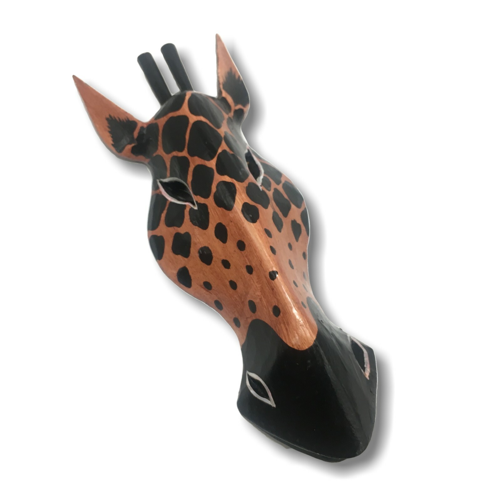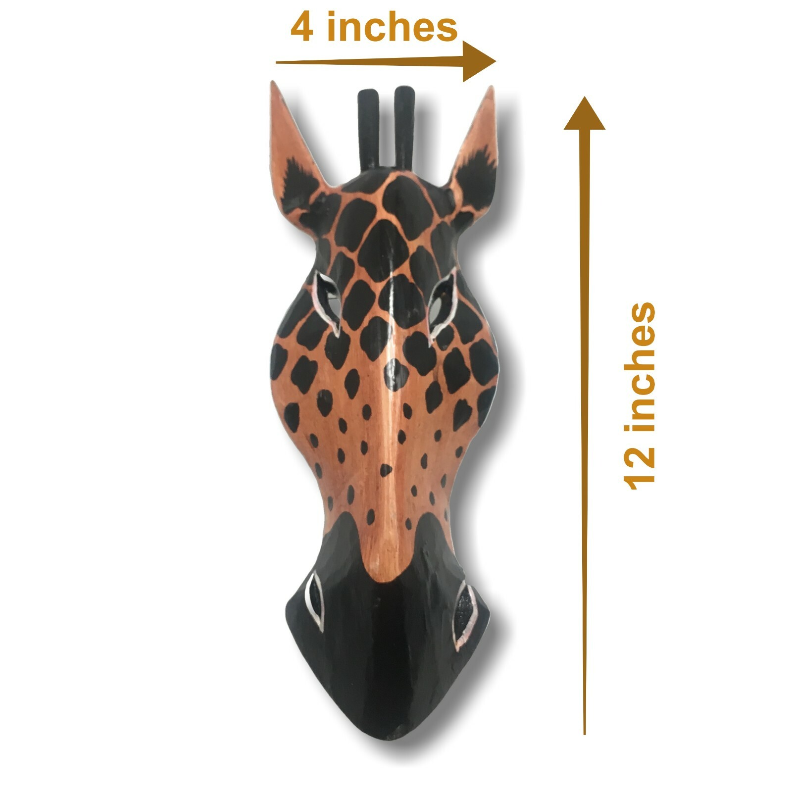 Note To U.S. Buyer,We ship this product DDP (Delivered Duty Paid) to the United States.All customs clearance, duties, and taxes are fully covered by us, and no additional fees will be charged to you upon delivery.Add a touch of the wild to your décor with this beautifully hand-carved Giraffe mask. Crafted from high-quality wood, this Indonesian wood mask features a stunning animal print design that captures the essence of Africa's jungle and safari. At 12 inches tall, it makes the perfect wall hanger to give your space a unique and exotic feel. With its intricate details and expert craftsmanship, this Giraffe mask is a must-have for collectors and lovers of Indonesian culture. Bring a piece of the jungle into your home with this stunning hand-carved masterpiece.Giraffe Face Mask Painted Carving Wood Handmade 12 inchesBest for home decoration and wall hanging. Size : Approx. Height 12 inches x width 4 inches x depth 2.5 inches Brightness and