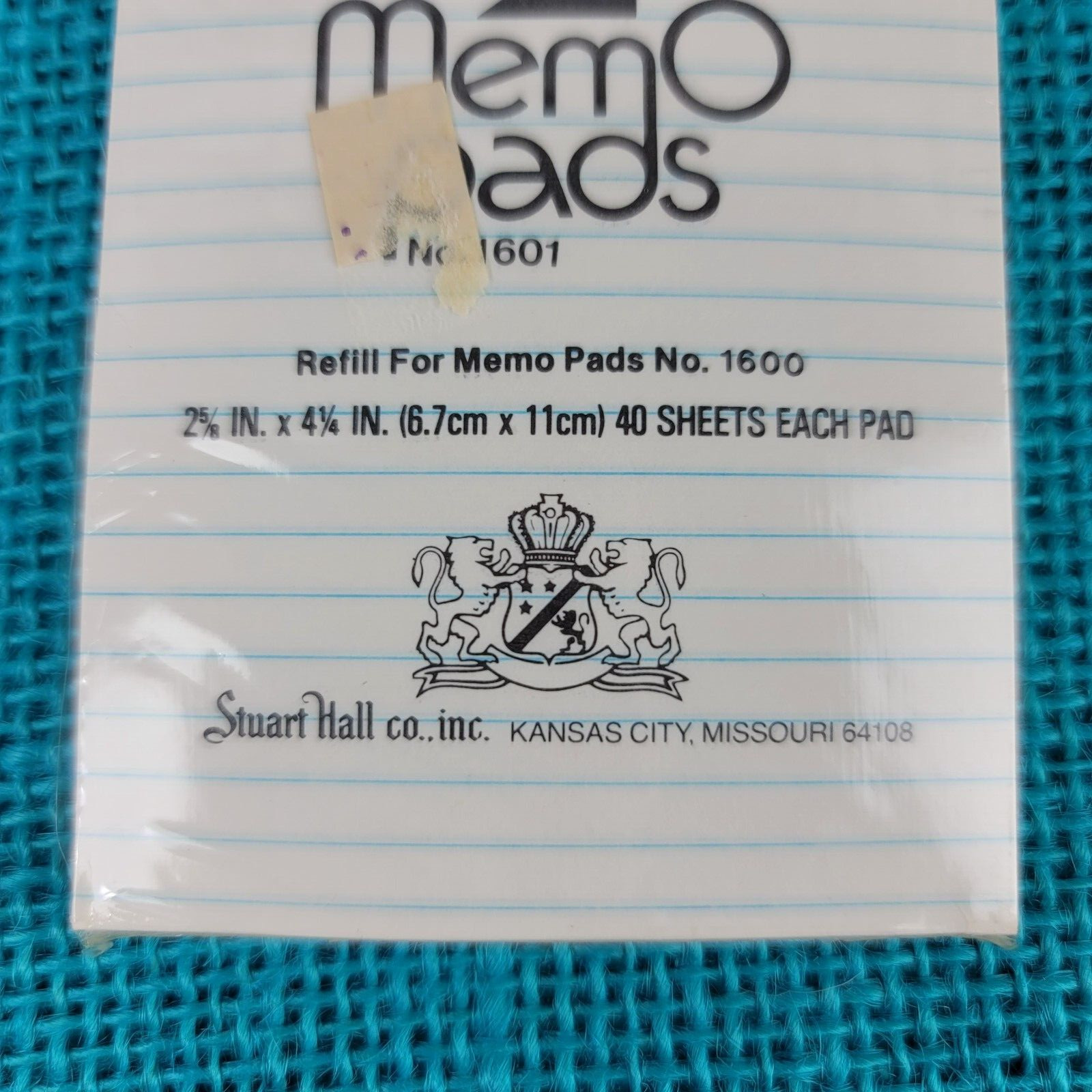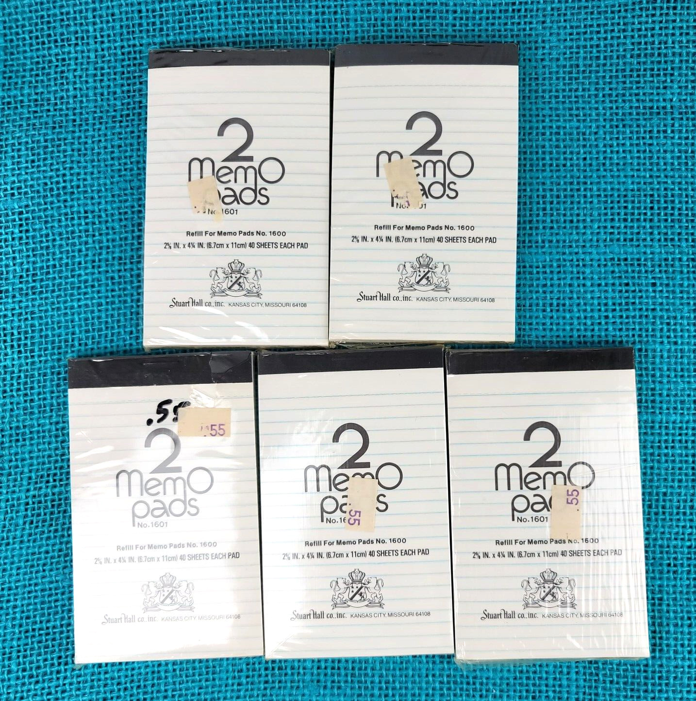 10 Vintage Mead Memo Note Pads measuring 2-5/8" x 4-1/4"- 40 Sheets Each Pad, Refill No. 1600.This lot is unused, old stock in packaging. Some of the packaging has wear.This lot is stored in a smoke/pet free home. Please buy with confidence that we will strive to make this an excellent transaction and you will enjoy your item.Please notice no returns. Thank you.