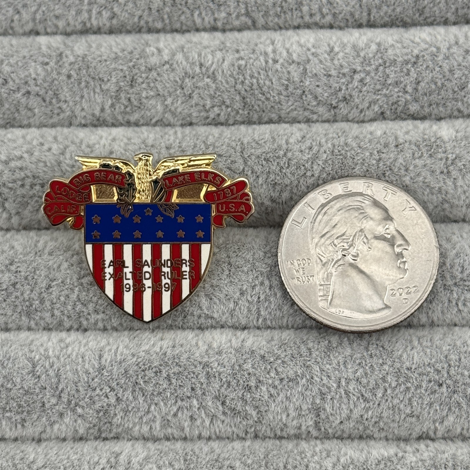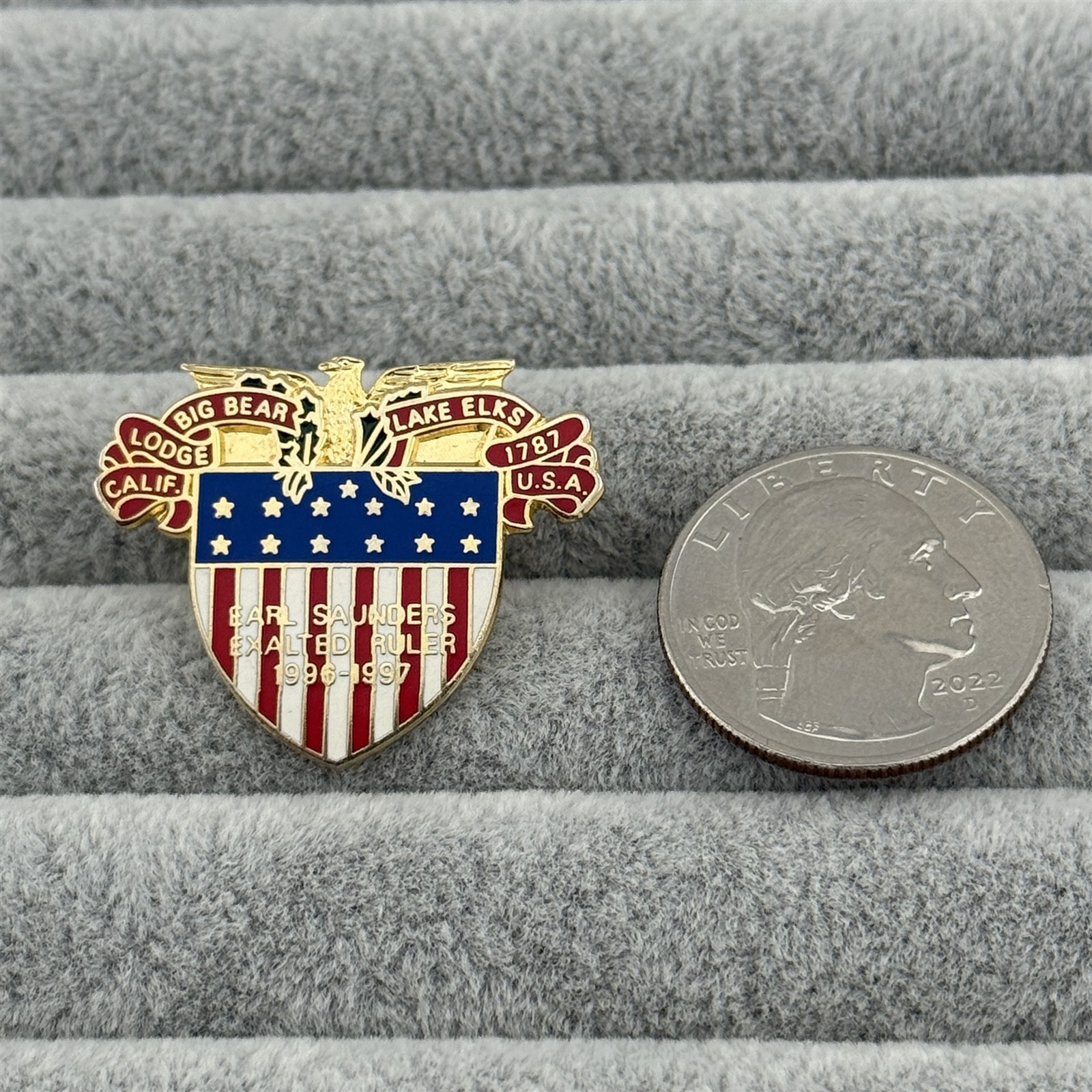 This Big Bear Lake Lodge #1787 CA Elks Club pinback (E. Saunders, 1996) is a collectible item suited for pin and fraternal organization collectors. The pin may show general surface wear consistent with age; please review the listing photos for exact condition and any visible details. If a coin is shown in photos, it is only for size comparison and is not included. Free shipping is included with purchase. Check the listing for details.