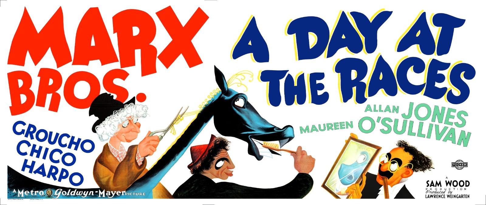 A DAY AT THE RACES (1937) HUGE restored 27"x58" Marx Brothers movie poster!