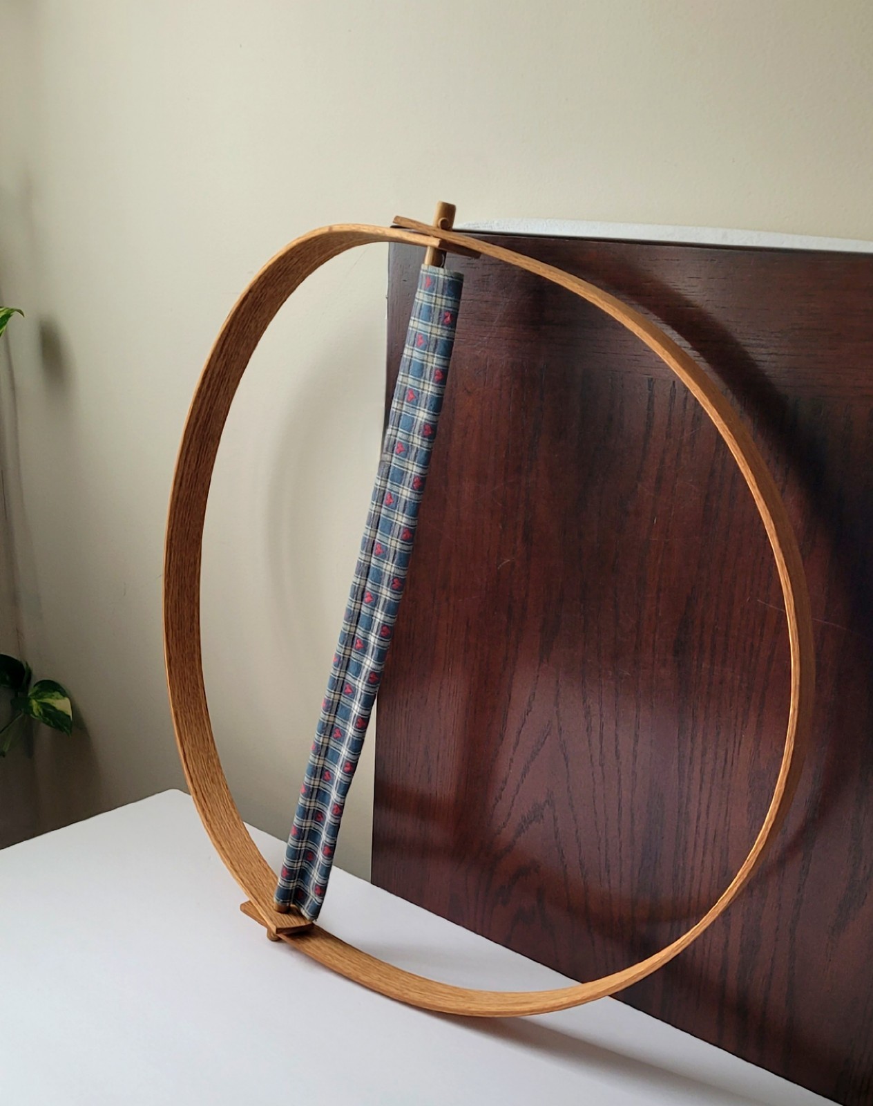 Vintage Polished Wood Quilting Hoop for Hand Quilting & Embroidery -Large Oval HoopVintage wooden oval quilting hoop used for hand quilting or large embroidery projects.It consists of a large, solid inner ring and a slightly larger outer ring with a mechanism to fold and tighten them together, holding fabric taut.The quilting hoop is in excellent vintage condition.Exterior dimensions of the open oval hoop are 20.5"W x 25.5"L.