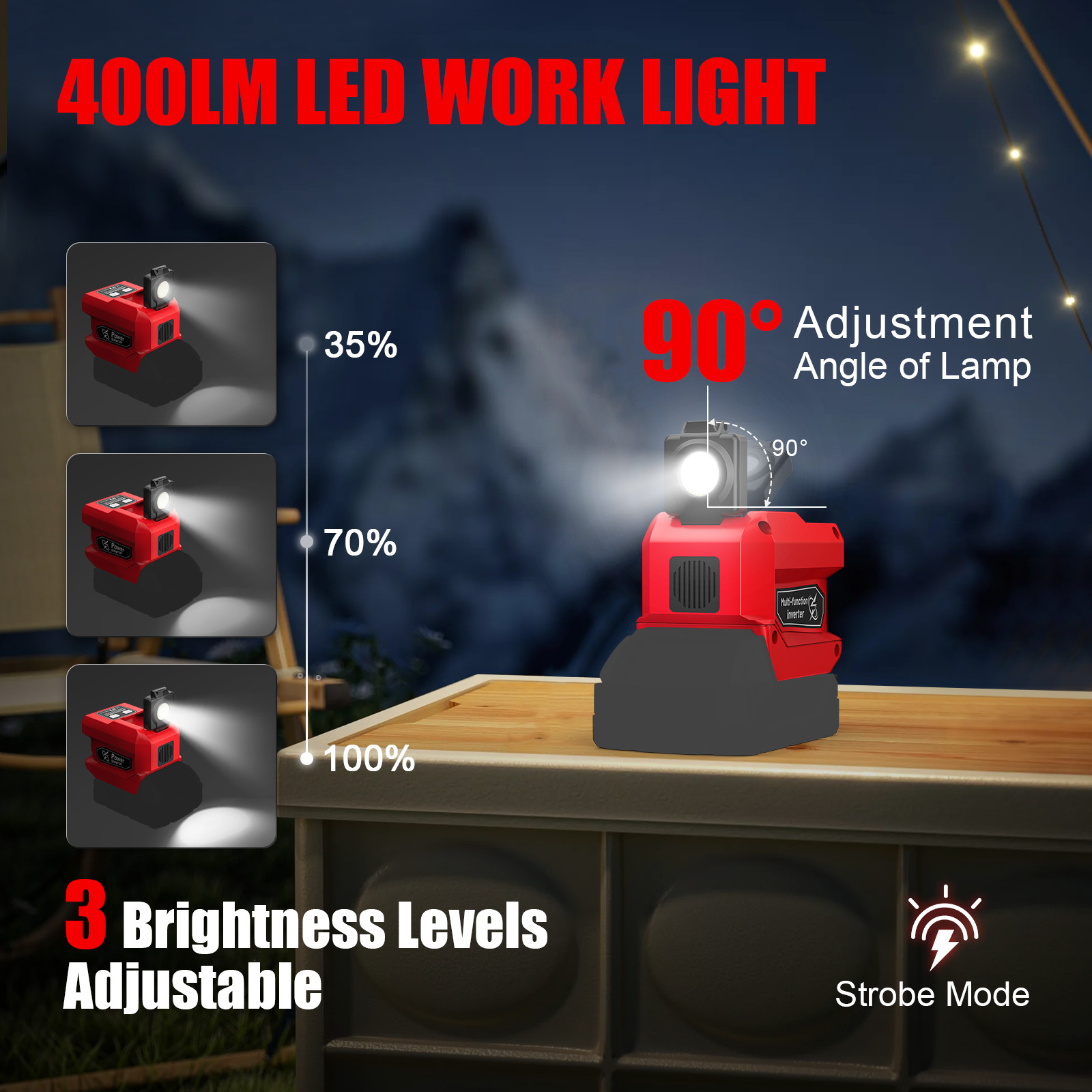 Core Category Detailed Information 📌 Product Overview 220W portable power inverter, converts DC 18V to AC 110V-120V; ideal for outdoor adventures, emergencies, and on-the-go power needs 🔋 Battery Compatibility • Compatible Models: 48-11-1815, 48-11-1820, 48-11-1840, 48-11-1850 • Key Advantage: Delivers portable power anytime, anywhere • Critical Note: Battery is NOT included ⚡ 220W Core Performance • Power Conversion: DC 18V → AC 110V-120V • Applicable Devices: Small electronics including smartphones, laptops, tablets, cameras, headphones, lamps, etc. • Core Value: Keeps devices powered up in scenarios without wall outlets 🔌 Multiple Fast-Charging Ports • Port Configuration: 1 AC outlet, 2 USB ports (QC 18W), 1 Type-C port (PD 30W) • Key Feature: Supports simultaneous charging; USB & Type-C ports enable fast, efficient charging 💡 Built-in LED Work Light • Brightness: 400 lumens • Functions: 3 adjustable brightness levels and strobe function • Design: 90-degree angle adjustment • Ideal Scenarios: Nighttime use, outdoor activities, emergency lighting 🛡️ Protection & Stability • Comprehensive Protections: Short circuit, overcurrent, low voltage, overheating, over-discharge, overcharging protection • Heat Dissipation: Built-in cooling fan for efficient heat management • Performance: Provides stable, reliable power in various environments Product introduction: table th, td th th:first-child, td:first-child th:last-child, td:last-child @media (max-width: 768px) th:last-child, td:last-child th, td }