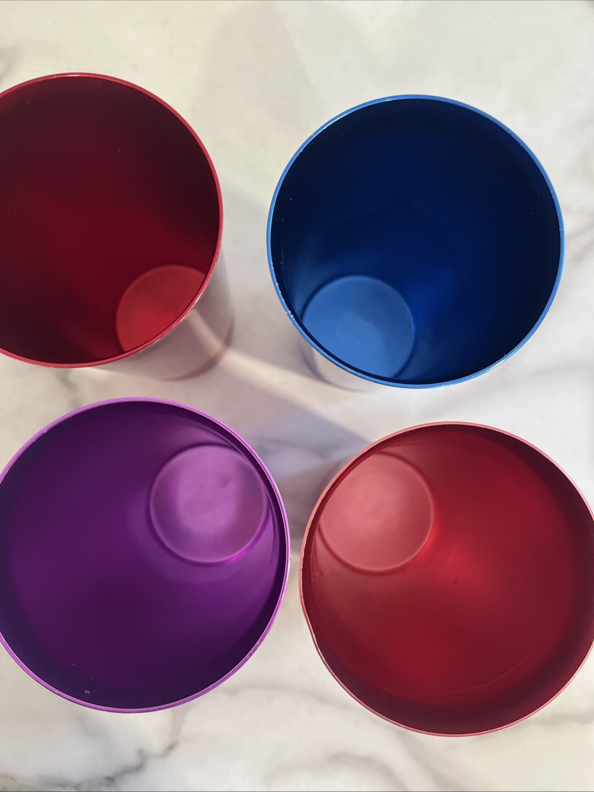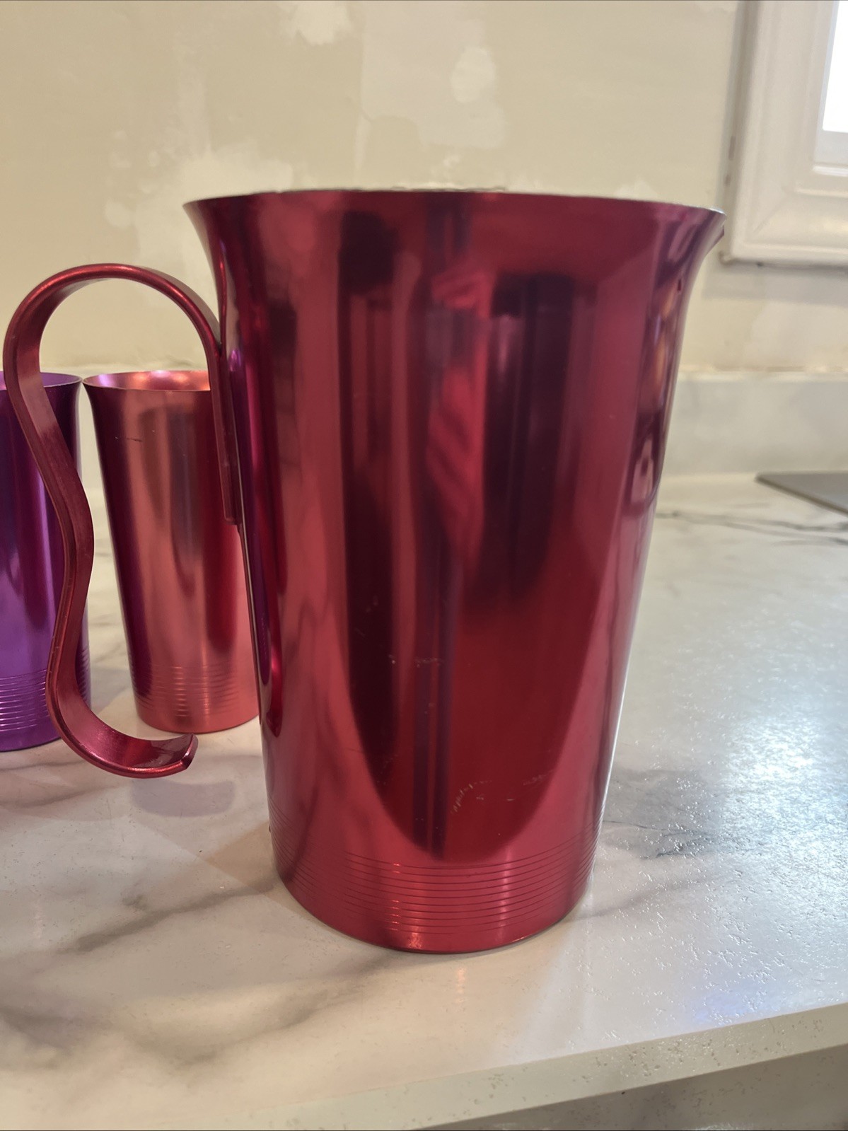 Vintage MCM Retro Aluminum Westbend Colored 4 Tumblers And Pitcher