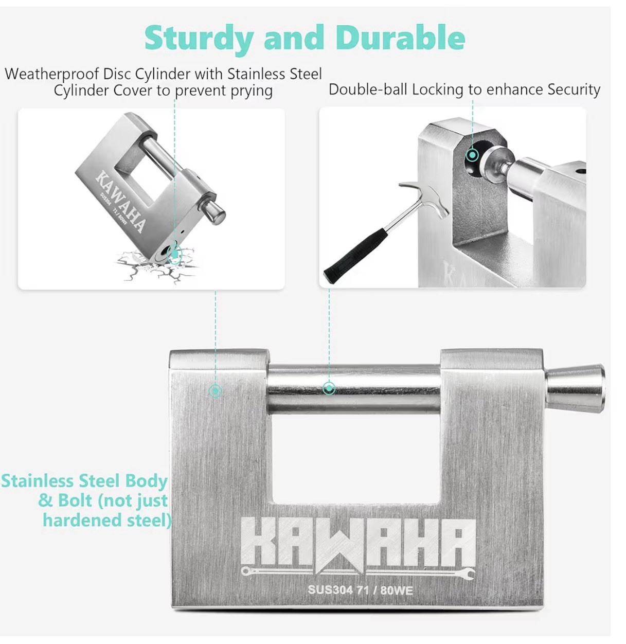 Material Stainless SteelRecommended Uses For Product Securing doors, containers, and fences, both indoors and outdoors🔒 [APPLY TO ALL WEATHER & ANTI-CORROSION] Performs well even under the extreme environments as lock body, shackle & cylinder cover are made of anti-rust SUS304 stainless steel which is waterproof and is high resistance in rusty.🔏 [ULTIMATE SECURITY] Protect your assets as with anti-pry double-ball locking against more than 4 ton pulling. This high security padlock with key is heel-toe locking with a freely rotating stainless steel shackle which leaves no weak spots on the locks and prevents attacks by cutting or sawing.🔐 [STRONG & STURDY STRUCTURE] Both stainless steel lock body and shackle provide maximum corrosion protection during outdoor or indoor use. Special weatherproof anti-thief and anti pry disc cylinder make it perfectly suit your needs in high security.🔓 [PADLOCK APPLICATION] Its unique "D" shape make it the perfect solution for securing Container, Storage, Shutter, Garage Door, Gate, Fence, Shed Lock, Lorry door, Warehouse, Iron door, wooden door etc. **PLEASE CHECK THE BOLT SIZE MEET YOUR REQUIREMENTS.🔑 **KEY CAN ONLY BE REMOVED ONCE LOCKED, Padlocks supplied Keyed Alike with 12 stainless steel keys in total. (Keyed aliked WITHIN the same set only. Different sets are NOT mutually unlocked.)